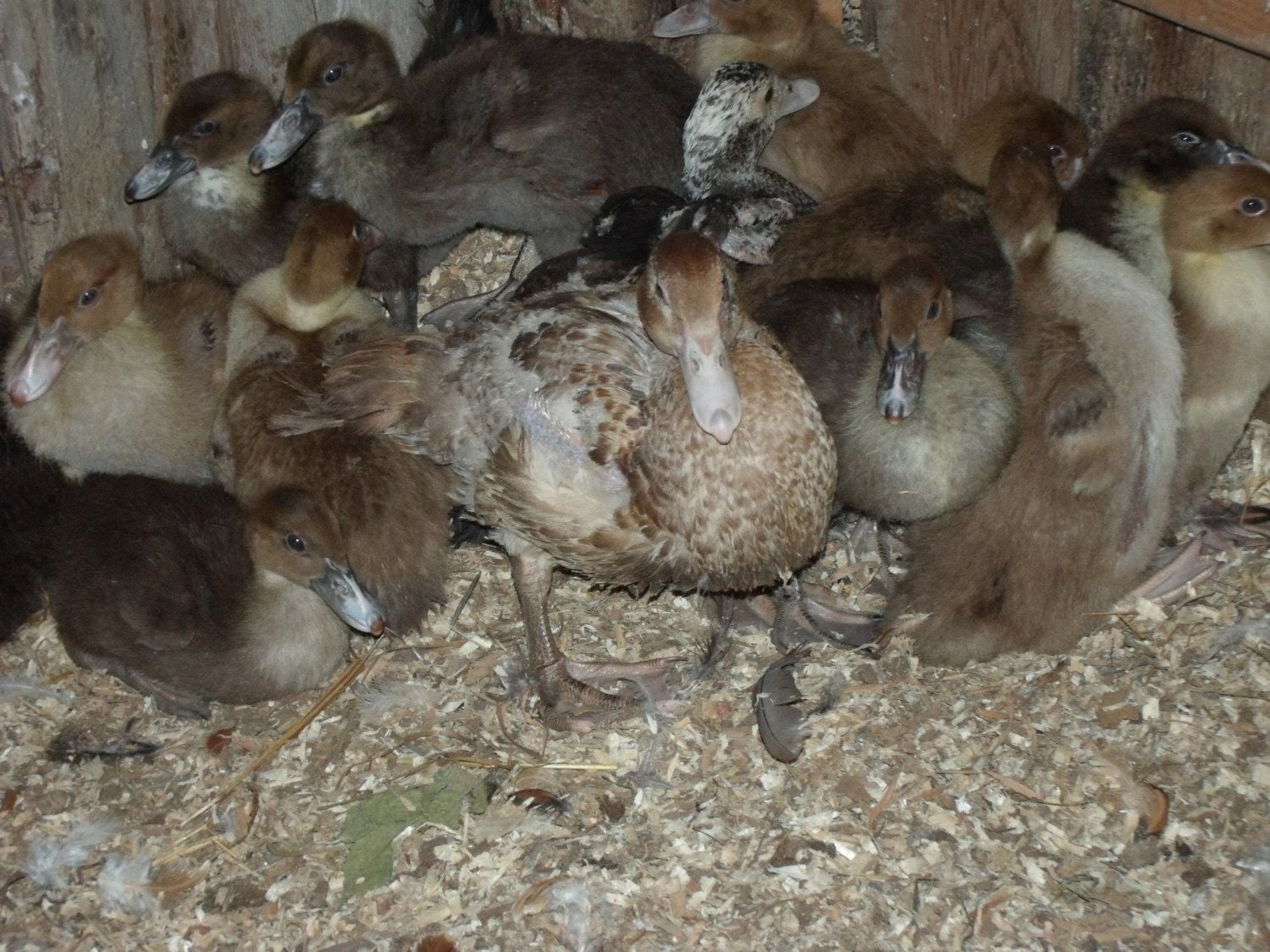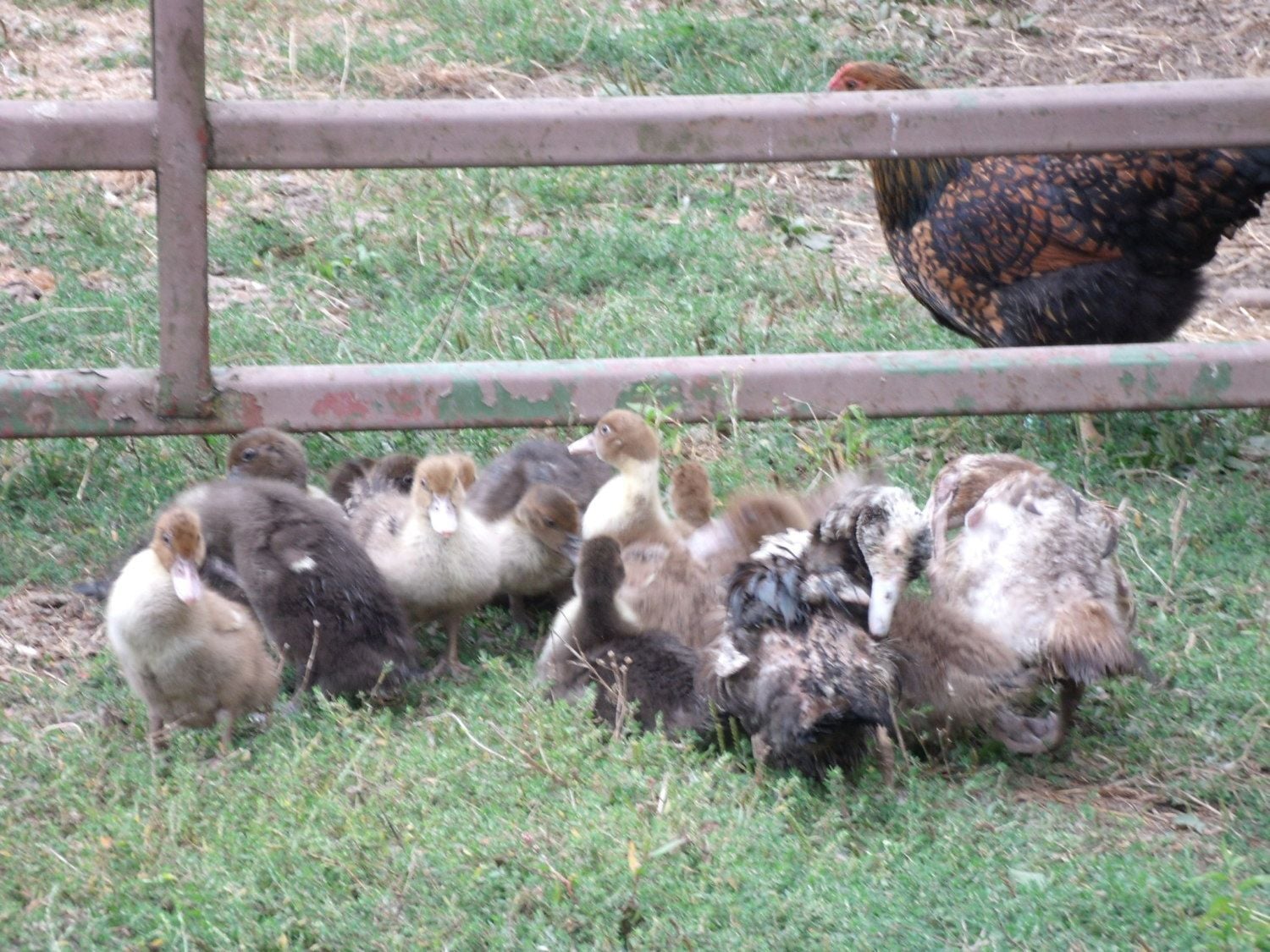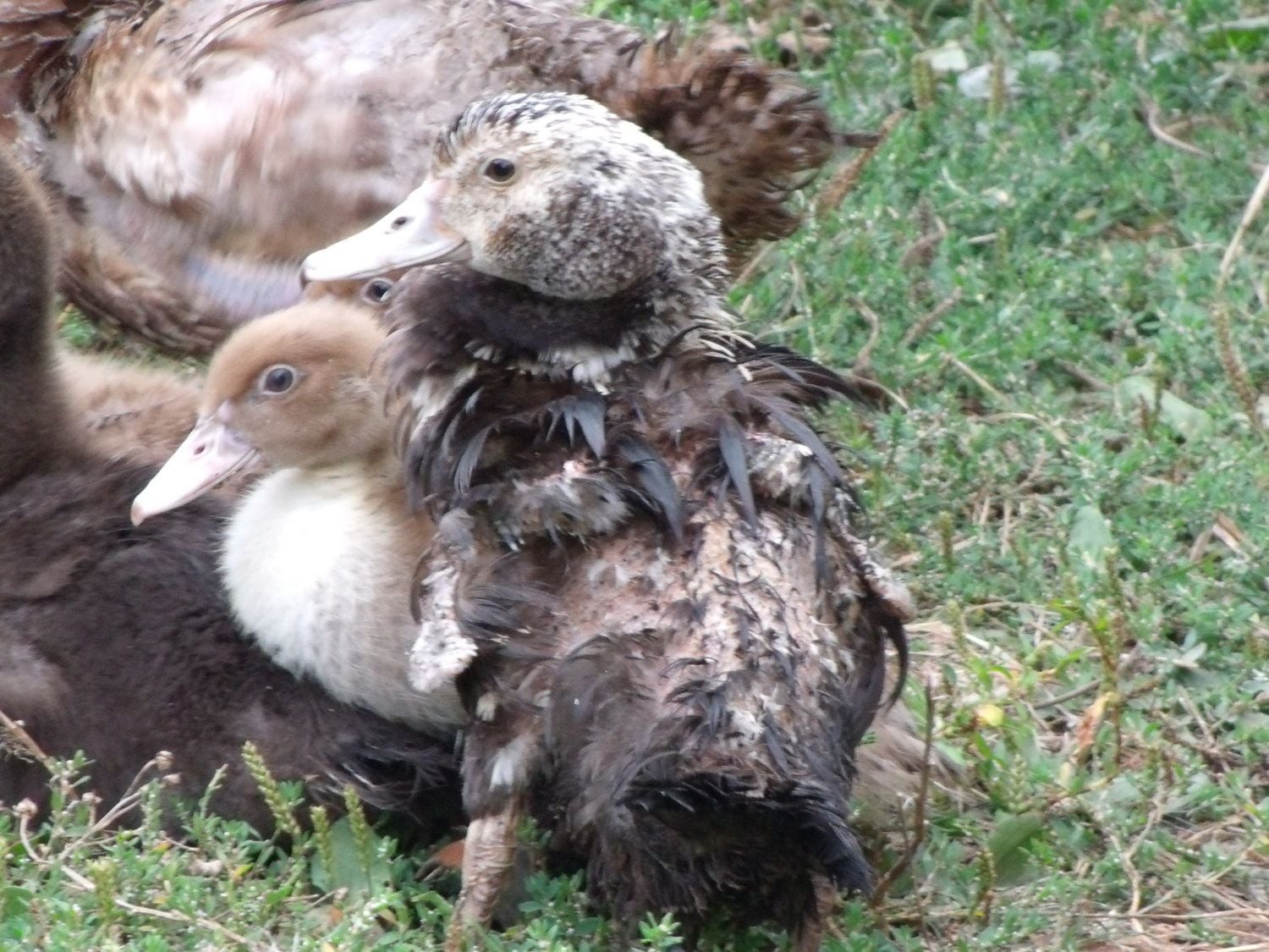 Apparently I am not meant to be duck-less. My sister wanted to go to the auction today and I ended up pity-bidding on a pair of muscovy babies because they were so pathetic-looking. Well then later on some younger ones came up for super cheap so my sister bought them too! (of course they're all going home with me though, lol)