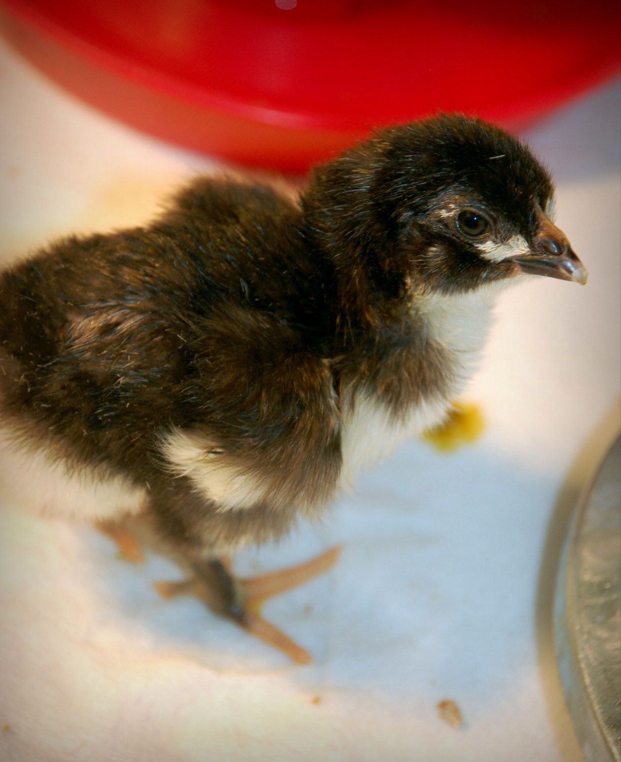 Here's my little chick that hatched in the incubator after mama hen left the egg in the nest. SHE is a black copper marans x blue orpington. I'm afraid she's gonna get lonely though. Now I'm just trying to decide if I should go find her a friend...