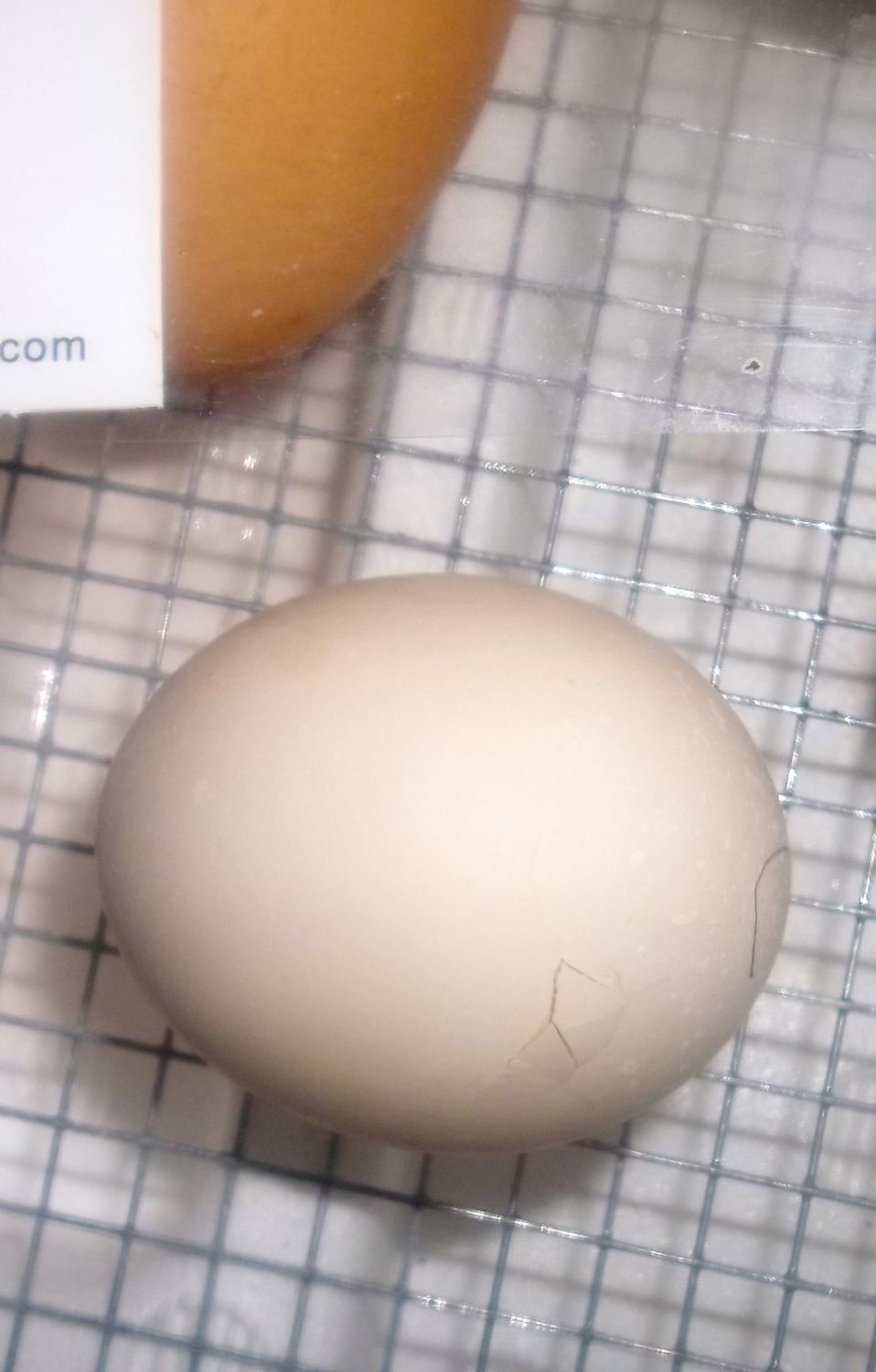 So far we only have one pip. None of the other eggs are rocking or anything yet, but I'm not giving up just yet. The one that pipped is chirping up a storm. Right now I'm glued to my incubator starring at it waiting to see what's going to happen LOL. Here's a picture of the one pipped cochin egg...