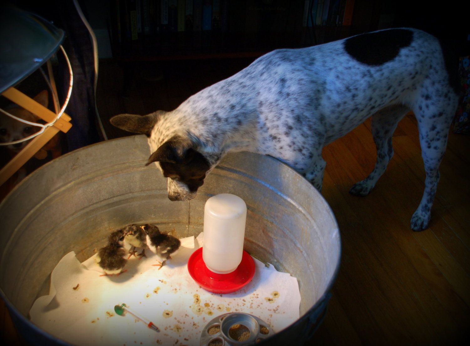 (had to add this pic in! Jolie my heeler mix LOVES the baby chicks!!)
