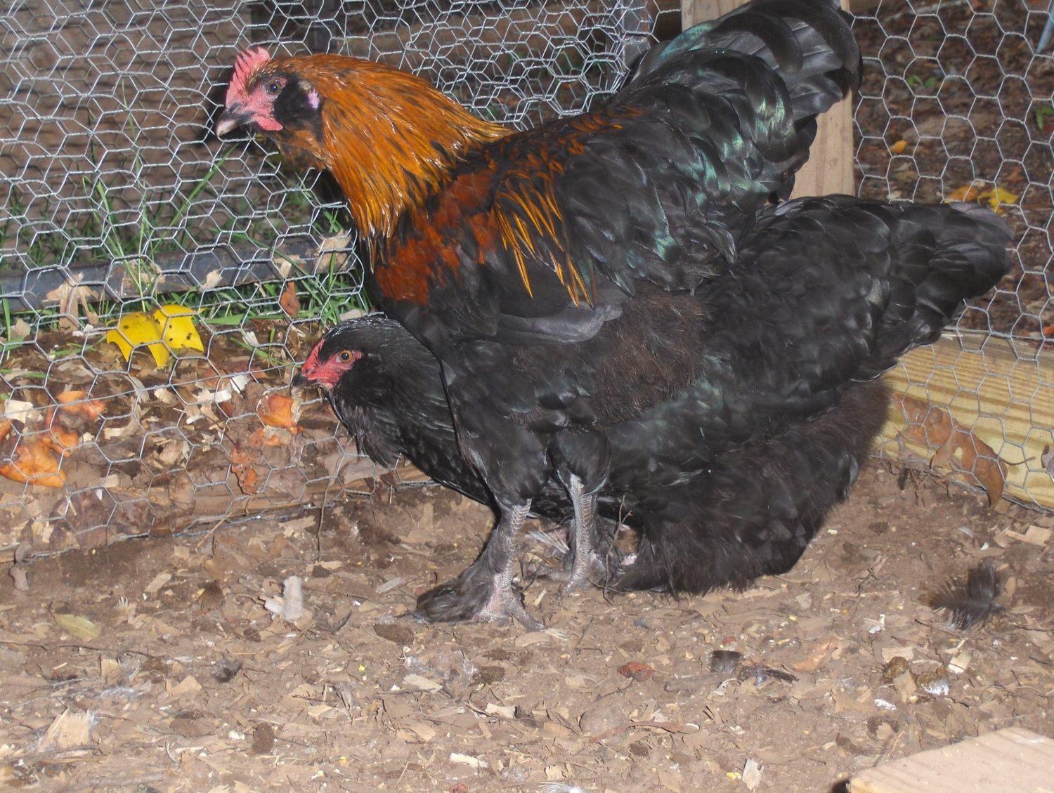 And he is still coloring in!! Give him 6 weeks and see what he will be!!! She is such a nice gal too...I enjoyed her visit!!My OE pair...she was suppose to be a French Copper Maran purchased locally from a breeder but she has muffs and beard and lays a nice olive colored egg but since she has turned into a beautiful healthy gal after I raised her from days old...I have fallen in LOVE!!! And then Samantha had this awesome Roo she gave (OK...OK...loaned) me and now I love the pair! Wanting another OE gal to add to them!
