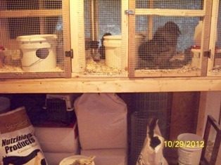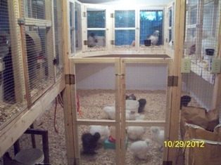 Separate pens high enough for me to reach in comfortably and a grow out pen on the floor.