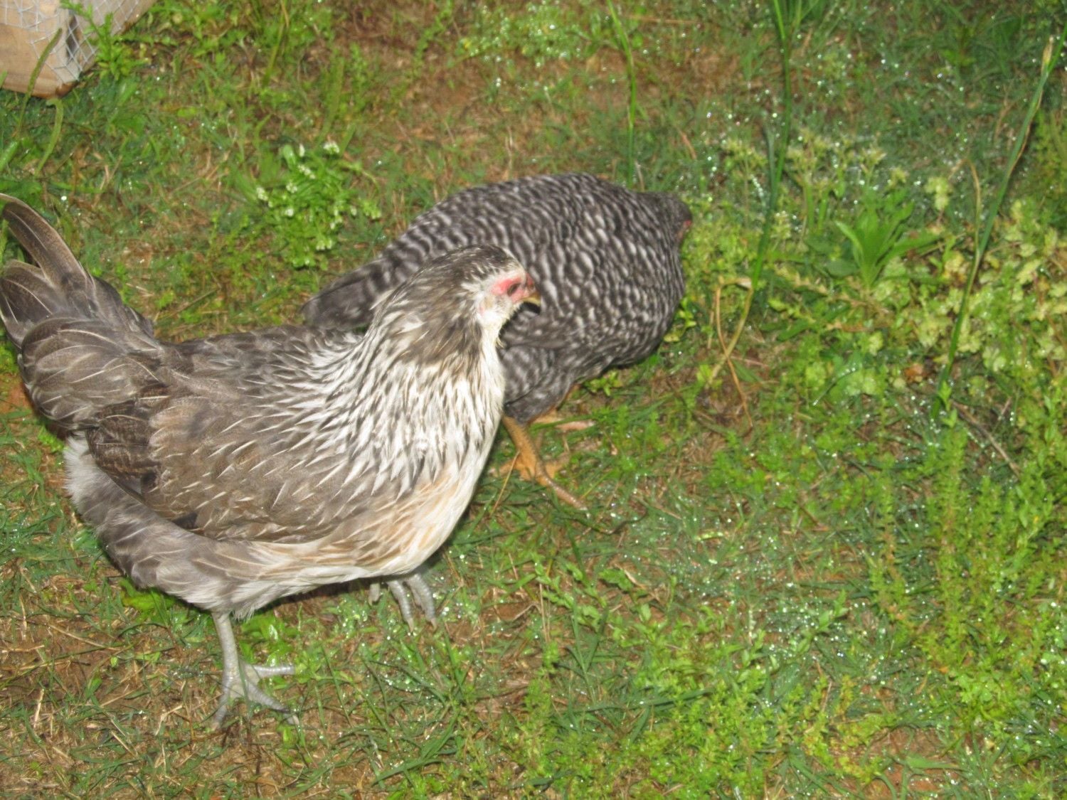 My D'anver escaped today when my ds was trying to feed them. We chased him all over the yard. My lf BLRW chased him down too. I am hoping this taught him that he is NOT top rooster! He did try to take on the EE roo in the last picture but it did not go well for him.