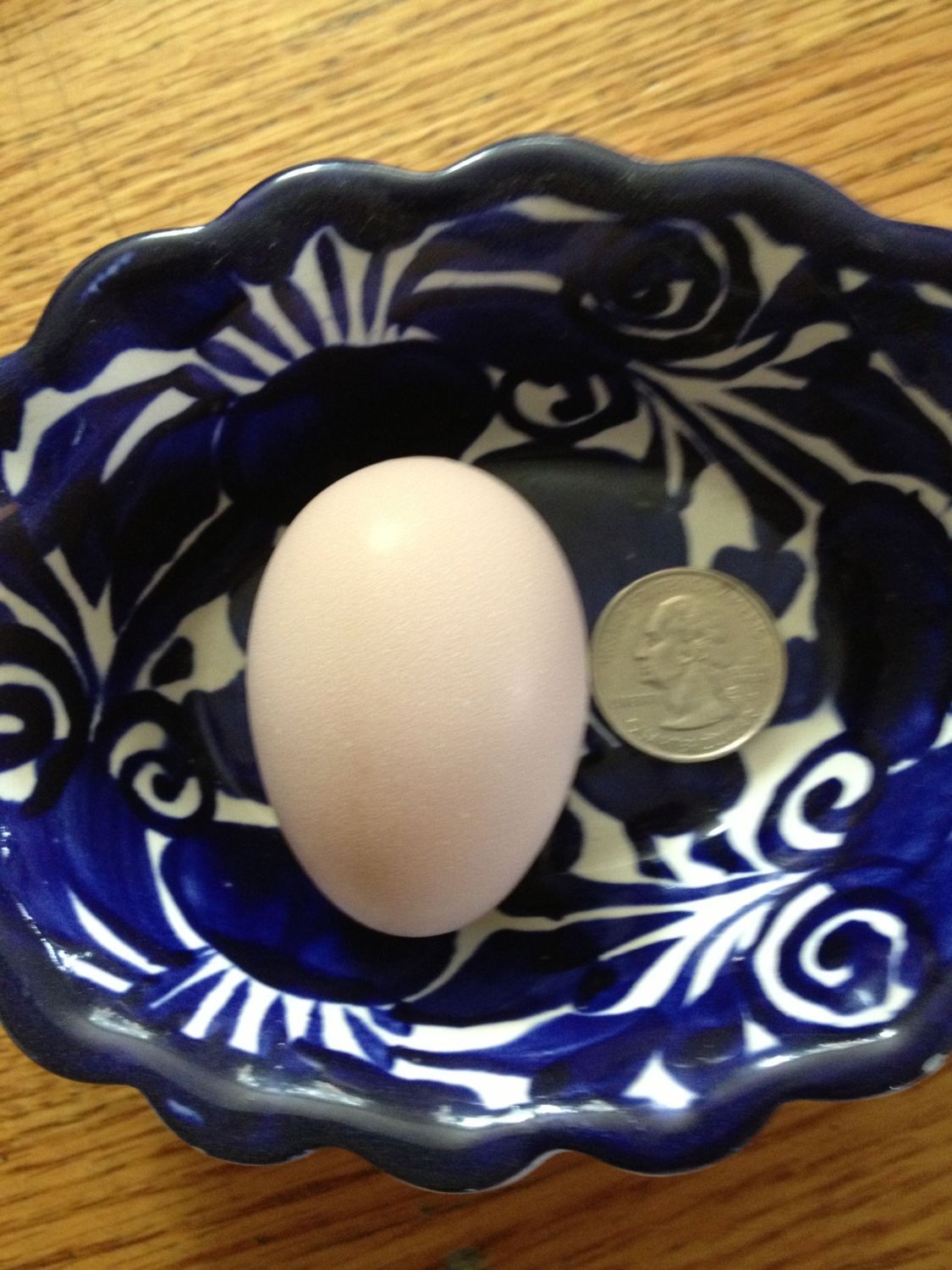 Ginger is a Buff Orpington and still small. I just can't believe that she was the 1st to lay.