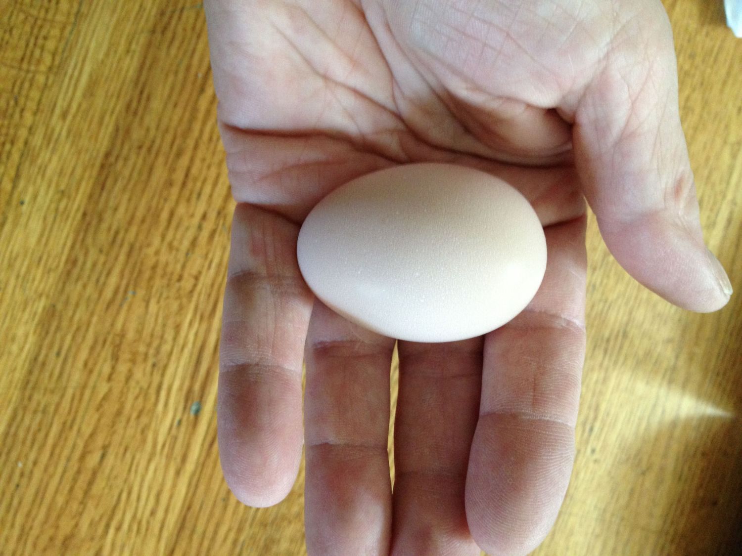 Went out to the coop to straighten it up. Company coming for dinner. Noticed Ginger in the nest box with Daphne and Poppy hovering. Everyone was uncommonly quiet. Then suddenly...... the "Egg Song"I have never heard one before but knew it and what it meant. Ran to the house to get DH. She was still singing by the time we got back!! I opened the nest box lid. Jaw dropped. Low and behold! My very 1st egg ever!!!!