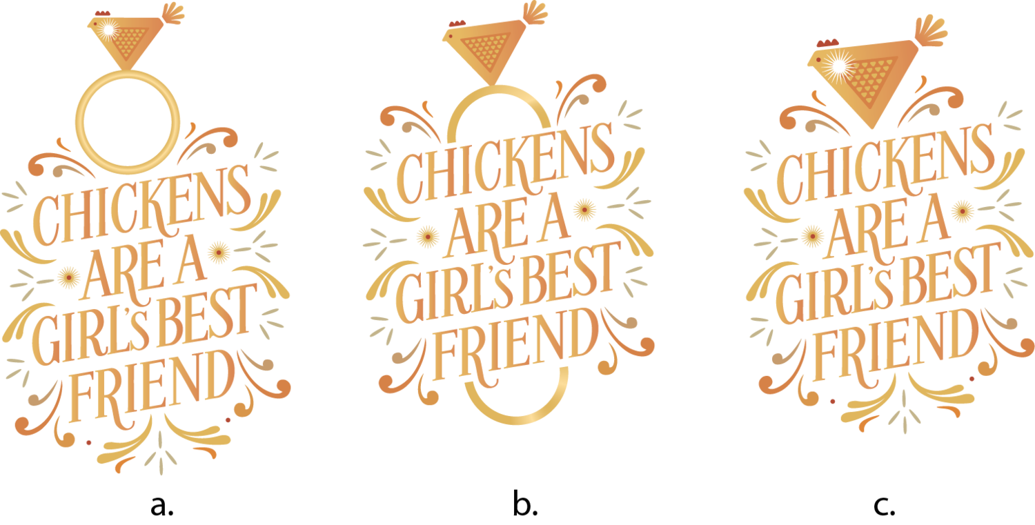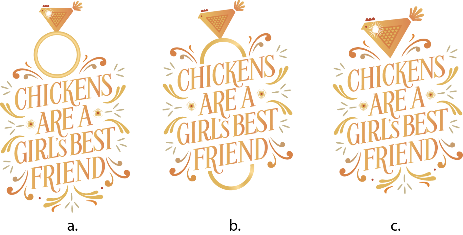I pick "C". It looks more balanced and the diamond is recognizable on its own and as part of the saying.