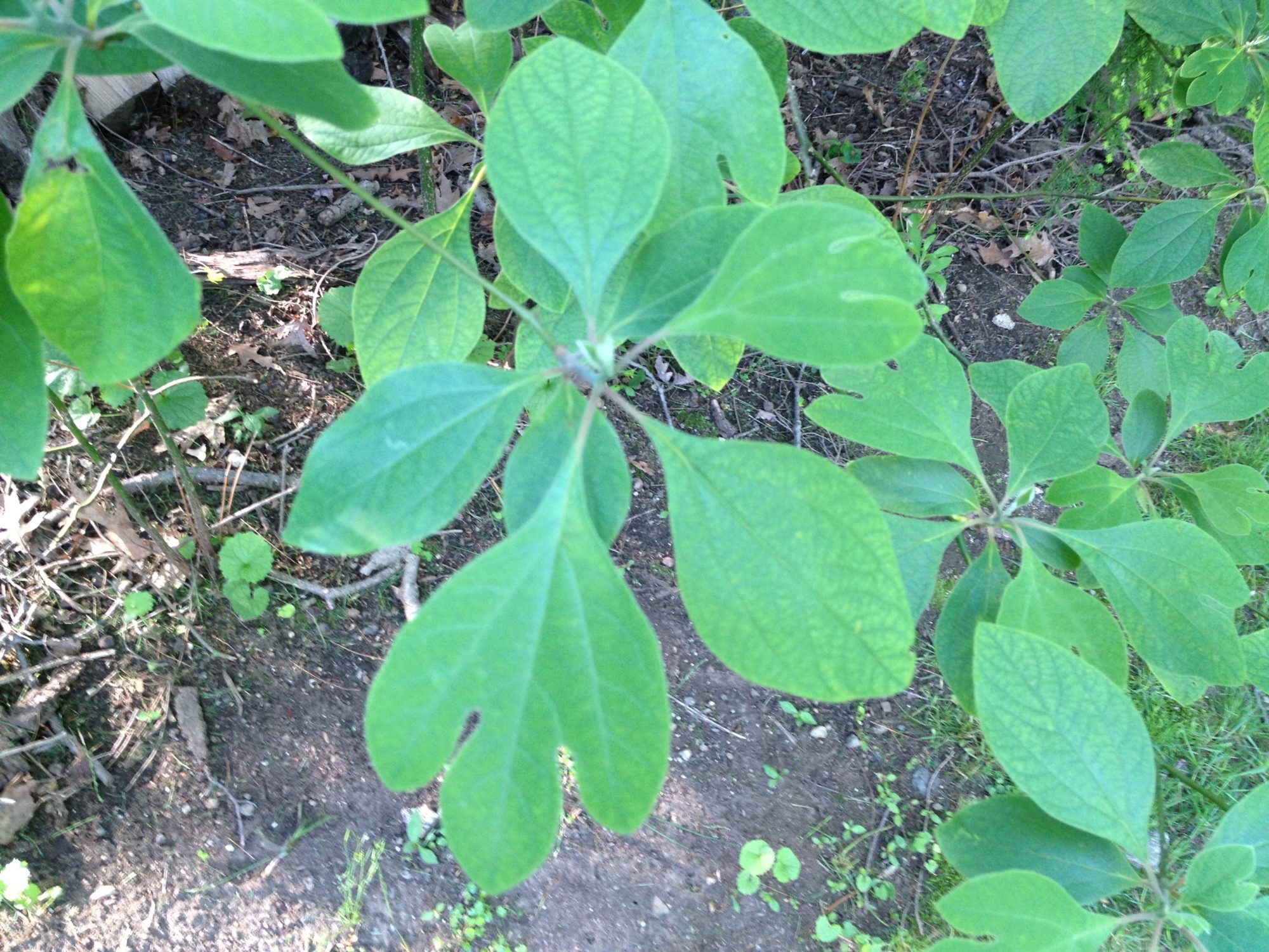In other nerdy things I happen to know topics, I took pictures of the Sassafras trees I still have in my backyard, so if anyone's interested, this is what its leaves look like: