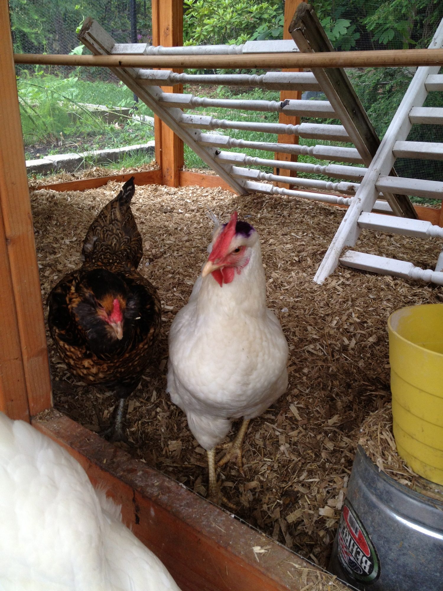 Heather: I love the railings you put in the run. We just used a beat-up old ladder.