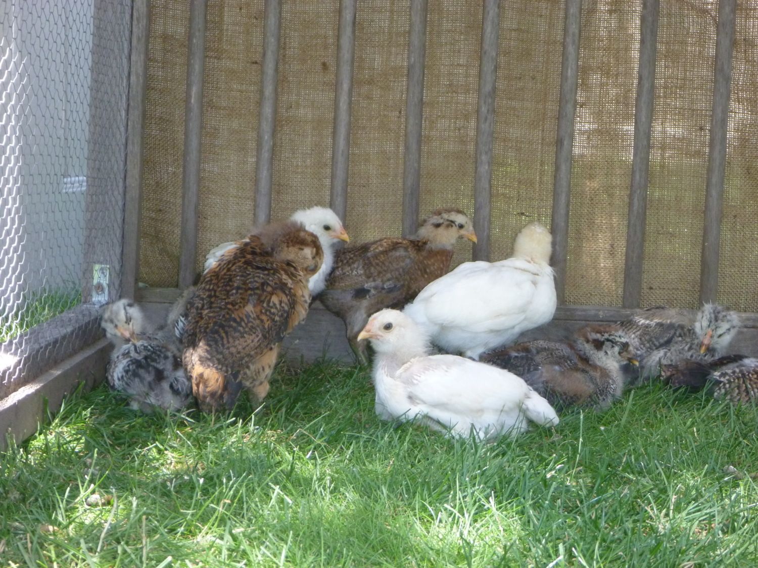I have to change the chickens water, and let them out, I'll watch them from the window-I have no fences, so I keep an eye on them the whole time they're out of the pen. They'll probably just settle down under some bushes and cool off there. Tonight I have to rake out the pen, but I have 3 sons to help me.