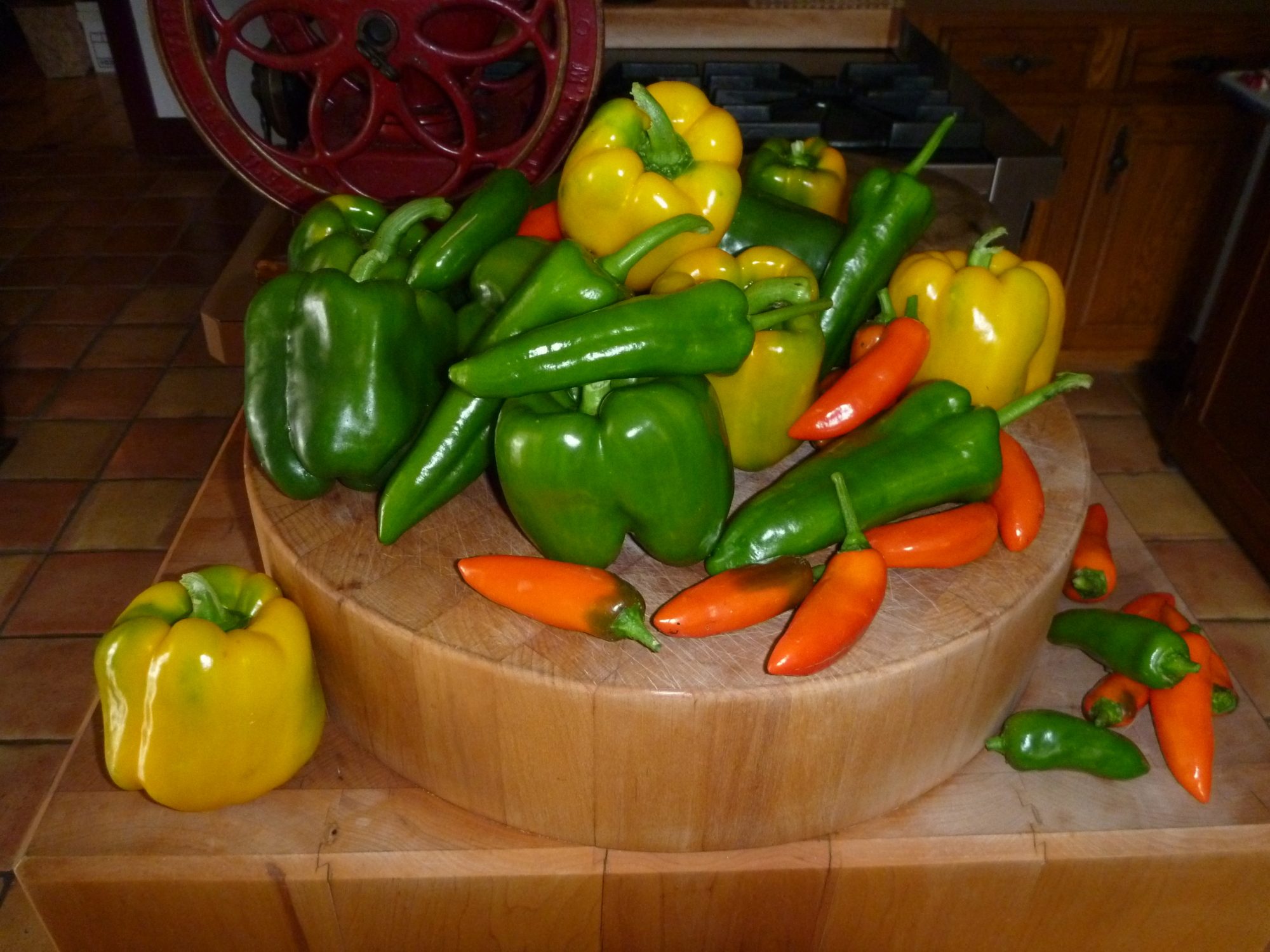All hail the queen of produce!! That looks awesome! Beautiful peppers! My beans are the same though, everywhere and then some. I found a stray vine going up into the pine tree! I gave away 2lbs of tomatillos, 1lb string beans, assorted cukes, okra & tomatoes today and a half-dozen eggs to the back-yard neighbors. Plus I FINALLY canned some tomato sauce - got 9 pints full! It was much easier than I thought it would be. Really looking forward to cracking those open in the winter now as opposed to fearing the Florida tomatoes in the grocery store. I also made grape/plum jam since I had a ton of each - ended up with 8 cups of jam too. The girls and their friend enjoyed licking the froth off the spoon once it cooled. I felt very Laura Ingalls Wilder today - then we went out for supper, lol.