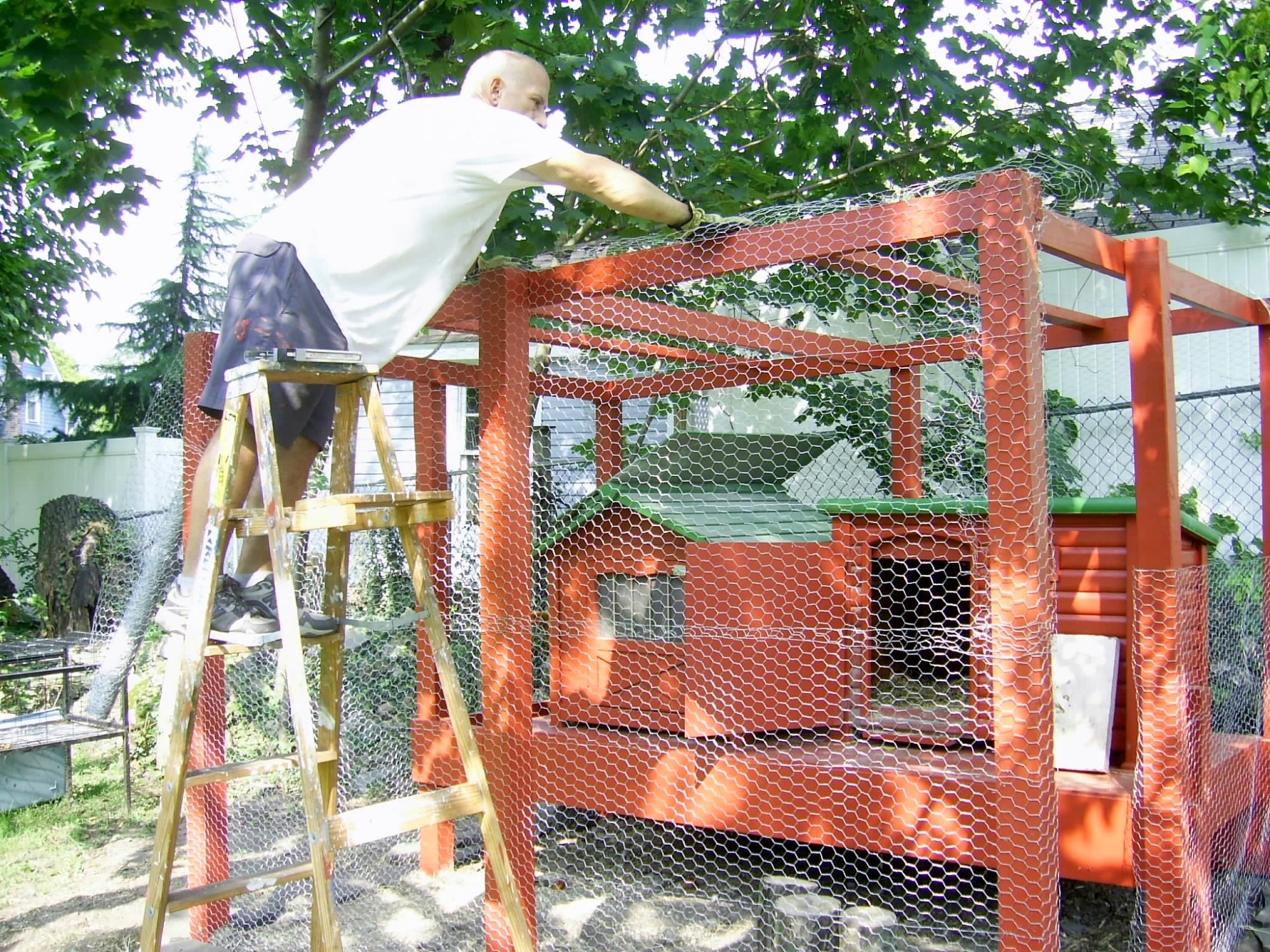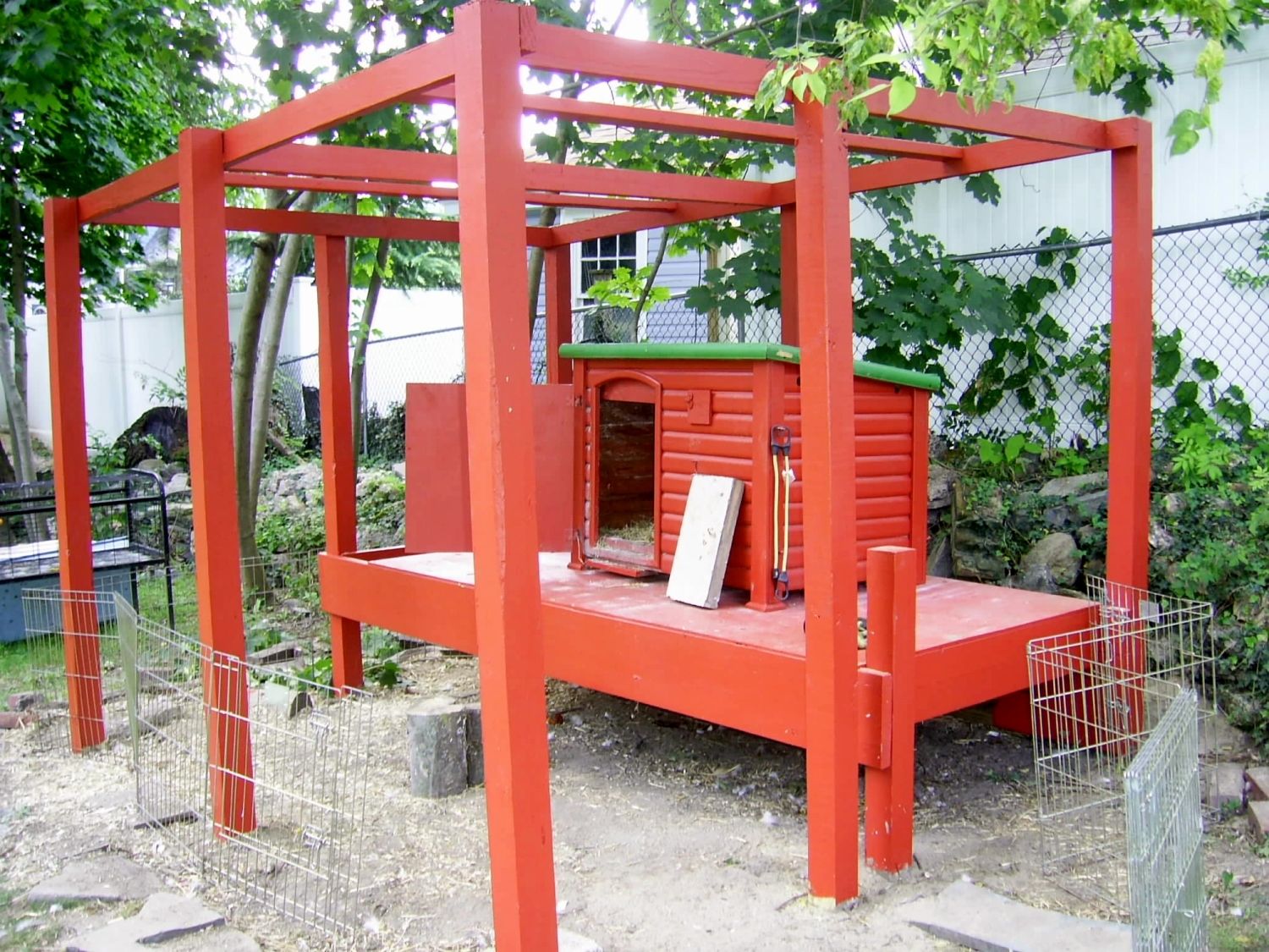 By mid-week hopefully the 1/2" hardwire mesh we are adding around the bottom of the pen will be up along with the refinished/cut to side and meshed screen door.