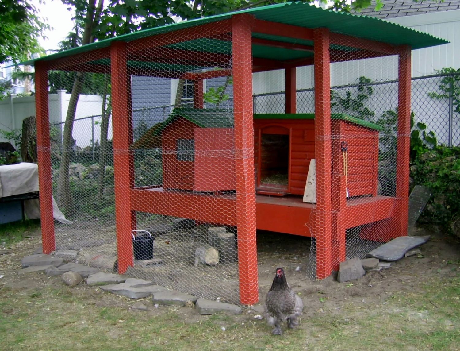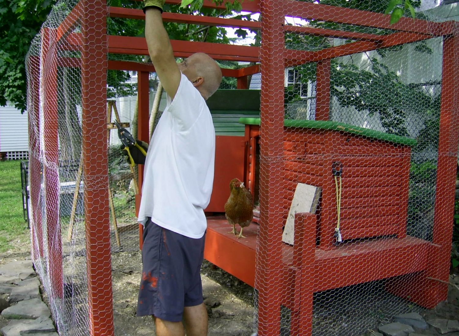 Pearl my BLRW, by far the most curious and talkative creature.... wondering what we are up to. She has laid eggs both days inside her coop whil;st all this is going on.