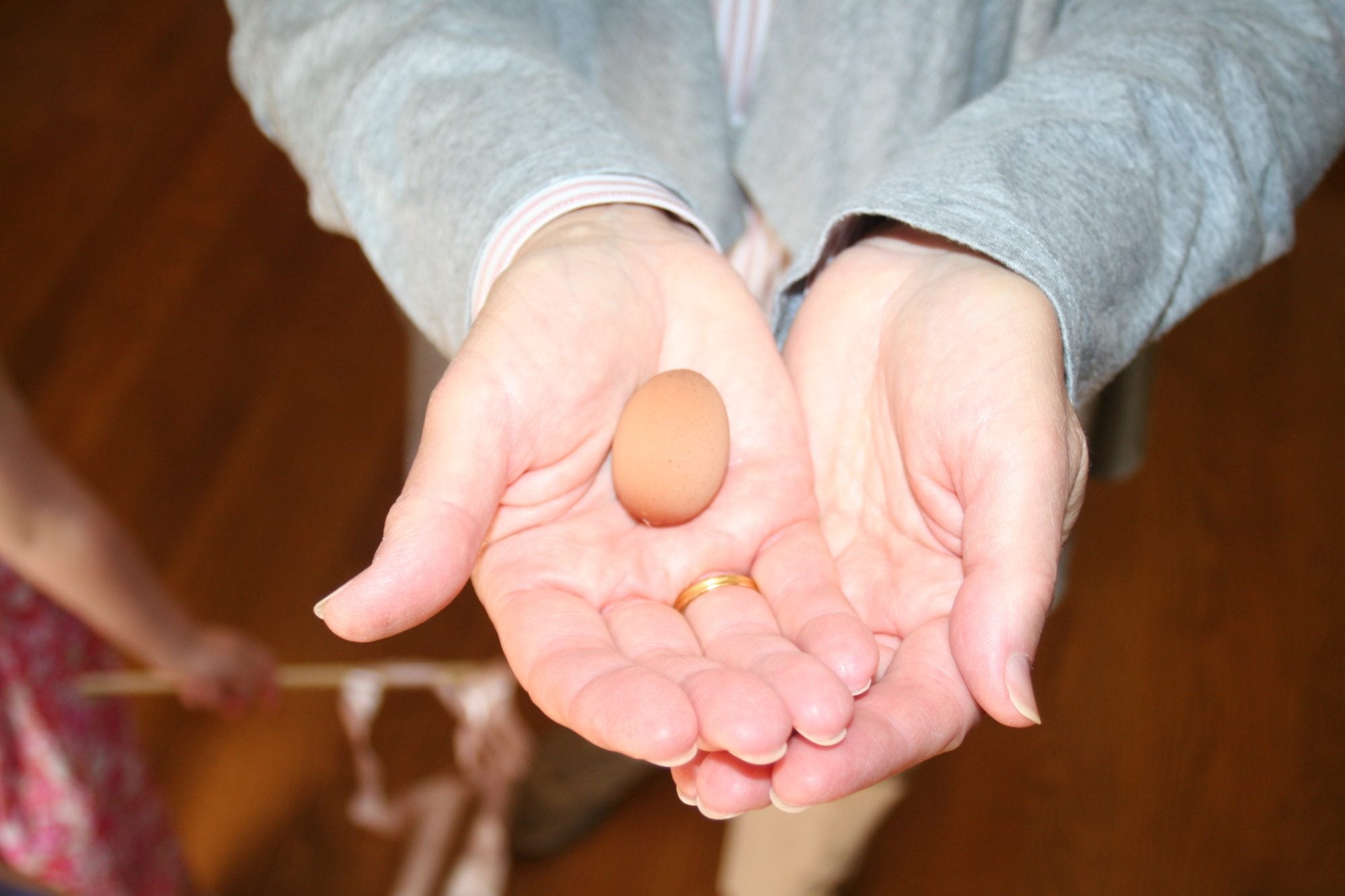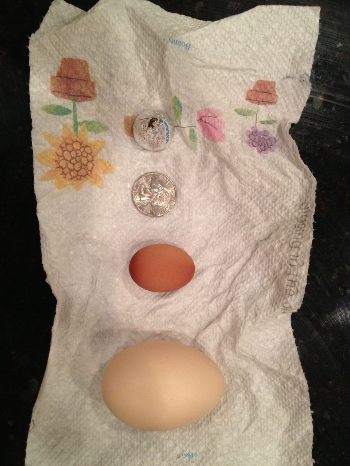 I got either a pullet bantam egg or a fart egg this morning. So wee and adorable! It looks like a Robin's egg in size. I won't know until it is opened. Either way, it's my first one like it. SO CUTE YOU COULD FAINT!