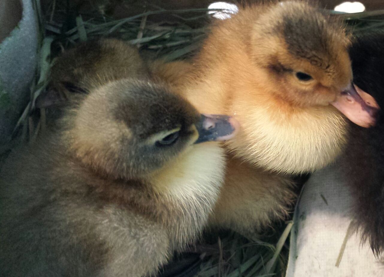 I will update as they grow, and let you guys know how they turn out. Today they are a lot more mellow than last night--yesterday, if one was taken out, it would peep a lot and seem distressed. Now they are quieter when they are out. Overall, all of them have a much calmer temperament than our rescue mallard. Now that I can compare the two, she was truly a wild duck from the very beginning, and I am glad we did not try to domesticate her.