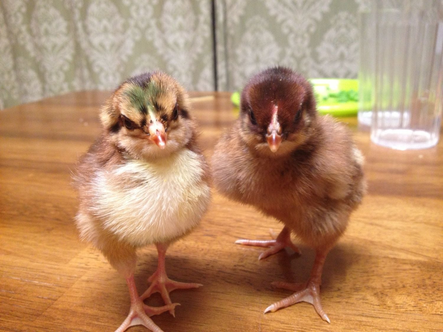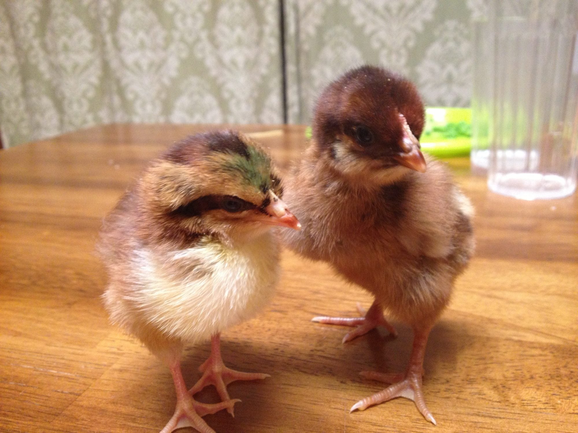 No, no mistake there. The one on the left with the green dot, has the dorsal stripe over the skull which is eWh and e+ locus birds. In this case, an eWh Speckled Sussex. The one on the right wears the brown helmet of the eb bird. A trademark of the eb Brown Partridge.