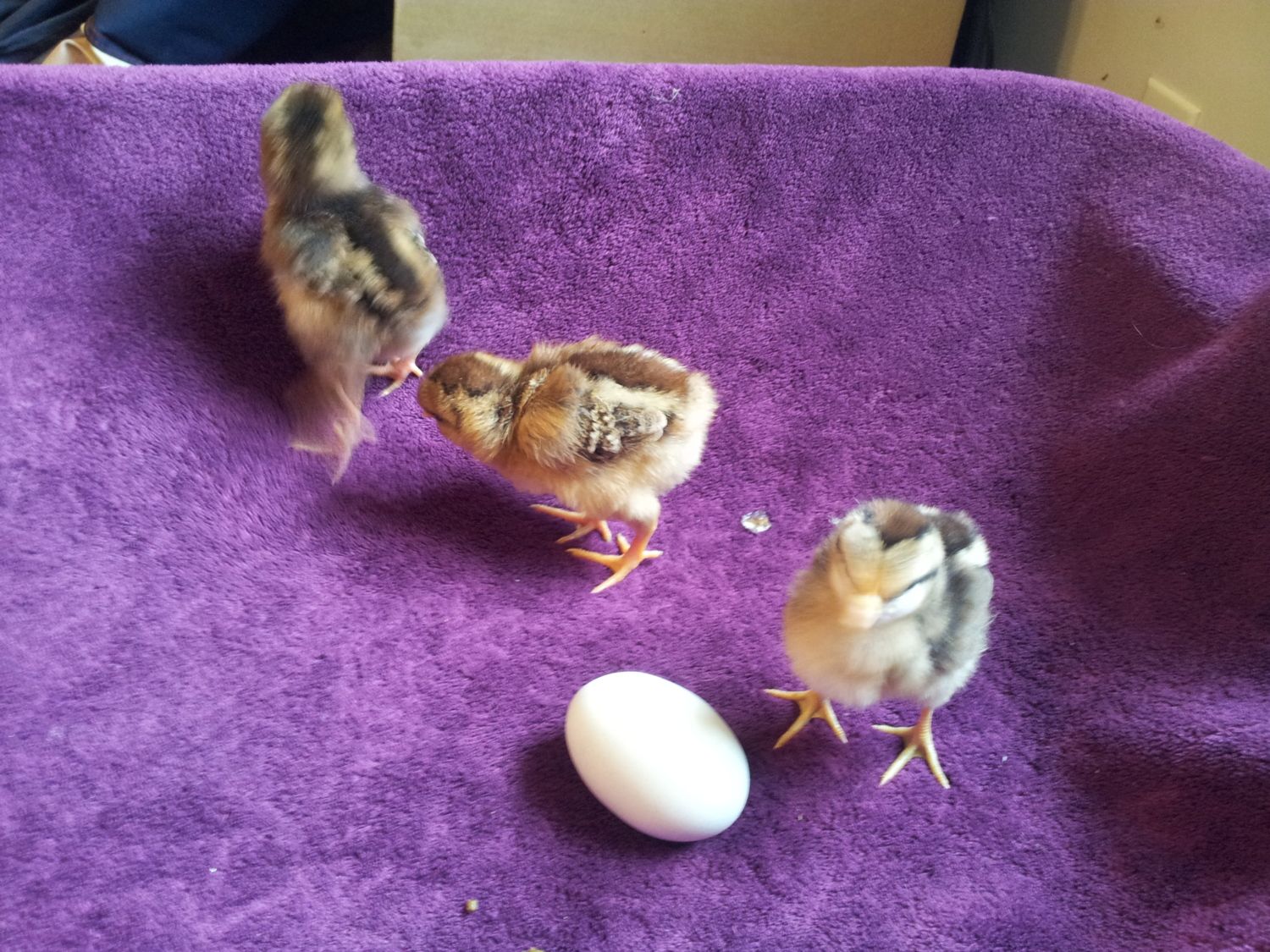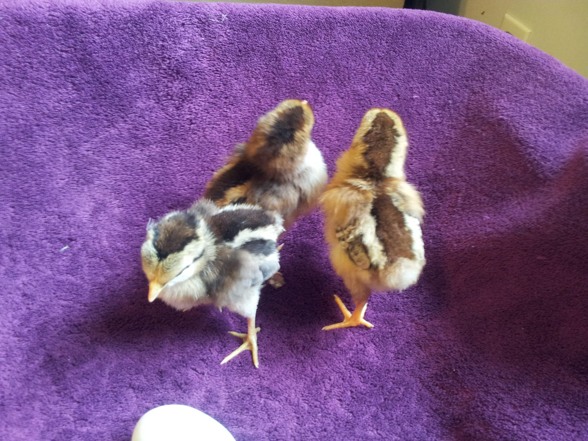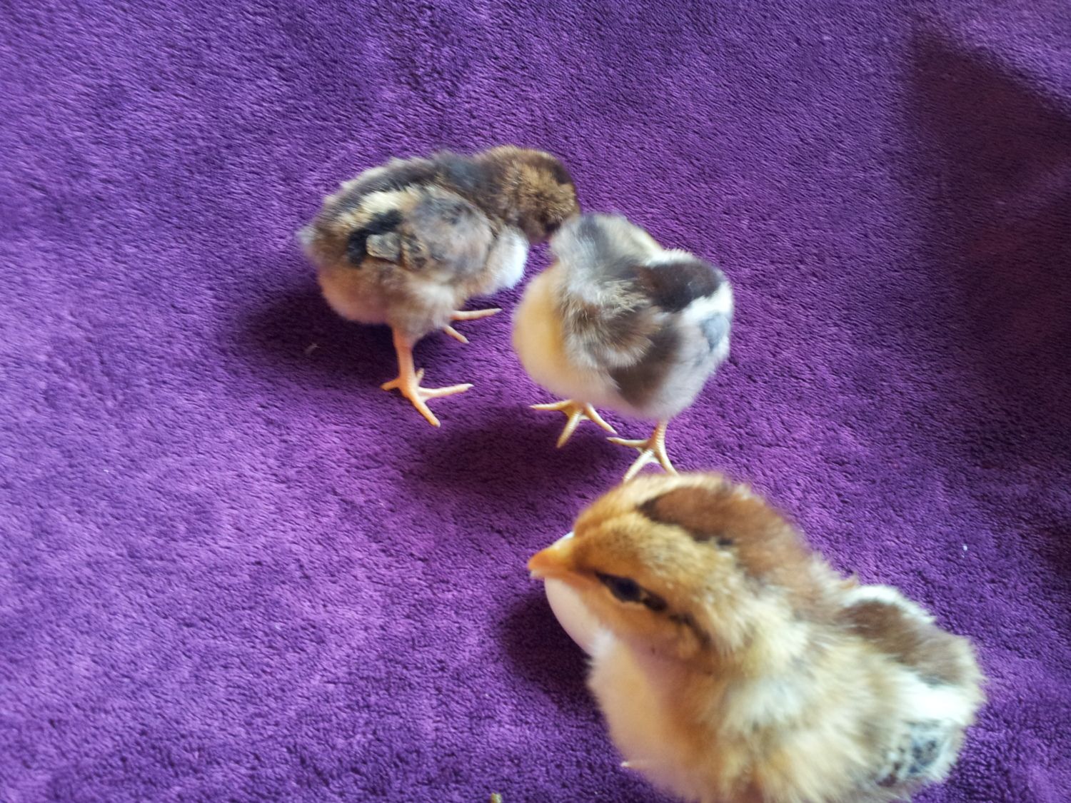I hope you can tell - one is lighter brown with a dark brown stripe down the back with yellow feet, one is more dark brown with an even darker brown stripe and pinkish/white feet and the other is more silver toned (I don't think it's this one, but what do I know?)
