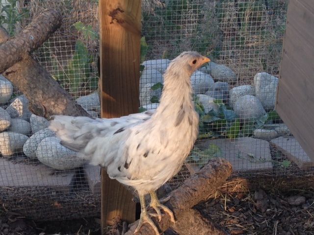 Ok, I have a young pullet that I purchased from a friend. She thought it was a California White which I thought was suspect because the chick just didn't look like I expected. I had previously had an Austra White so assumed my CW chick would look similar. The pullet should be around 18 weeks but she seems younger than that to me as well because she is still pretty petite and no developed comb. I noticed that my friend posted a chicken from her flock that looked very similar to mine and she said it was a splash Andalusian so now that is my best guess. Would love some input. Here are some pictures of her around the estimated age of 14 weeks