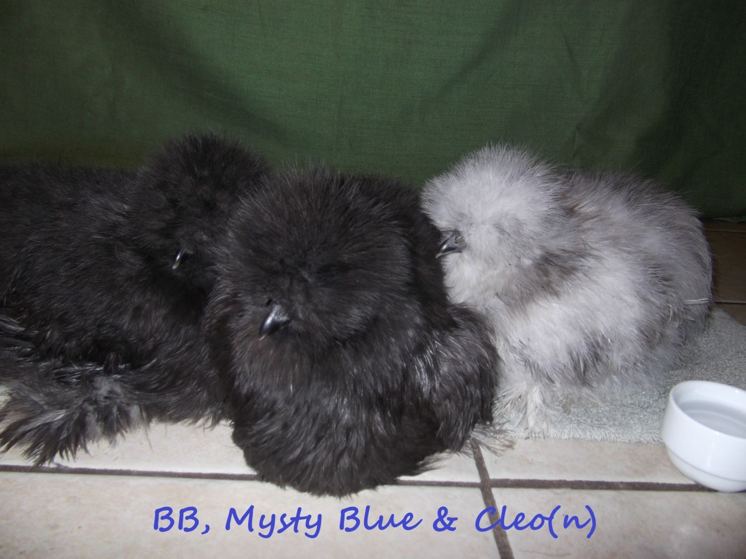 Thank you. Cleo was named because of her/his black splashes around the eyes...like eyeliner. And also reminds me of the colors from my white, silver-chinchilla persian cat I had as a kid. That's interesting that you like the look of Cleo. The breeder who I got the eggs from said Cleo/Cleon has the 'IT' factor even at a young age. Cleo is my smallest silkie and such a sweety. I'm thinking maybe a rooster, but he/she's a keeper either way. I just love my babies.Fabulous birds! Love that shot of Cleo especially, totally drool-worthy![]()