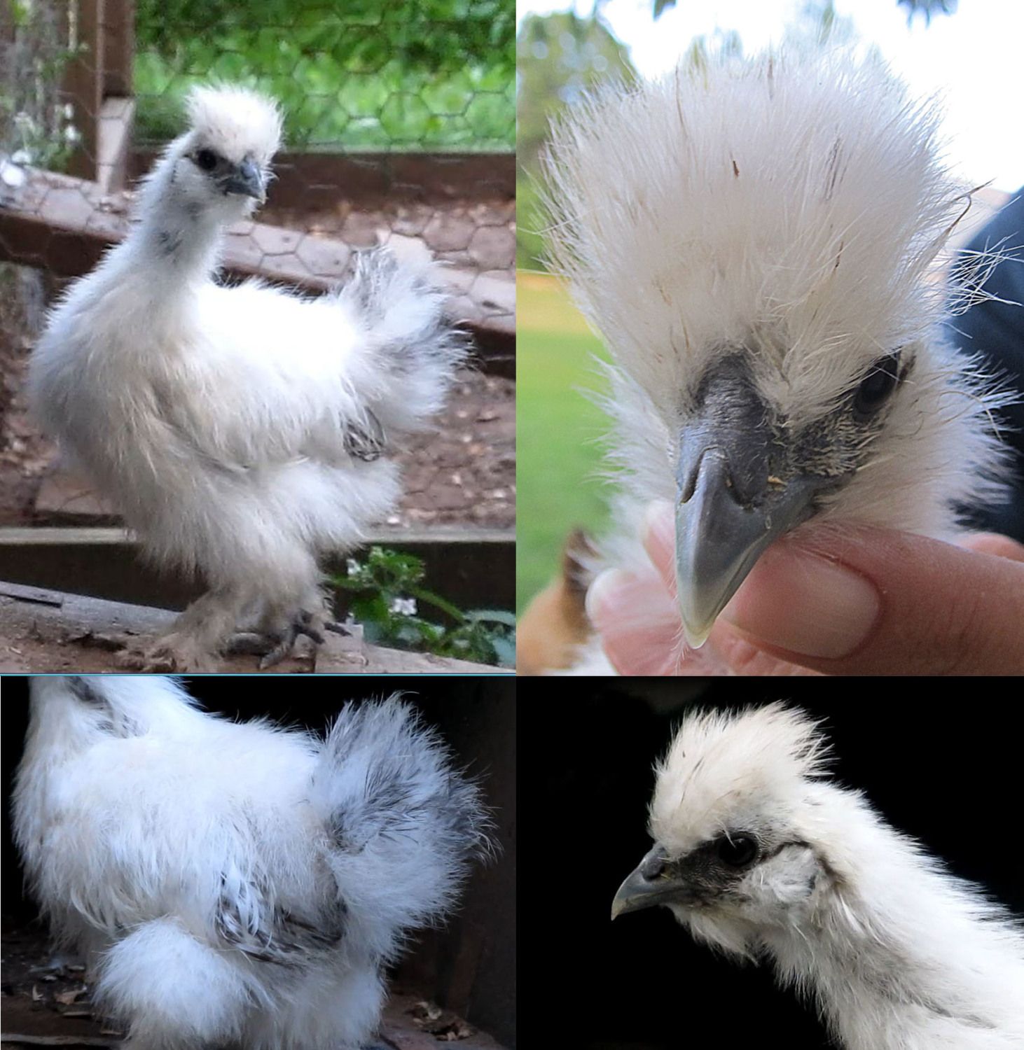 My friend just hatched this silkie out last night. The egg came from our farm though and I was wondering if anyone had any ideas of what color variation this little girl could be? ( upper left) Dad is blue and mom is white. Thank you!