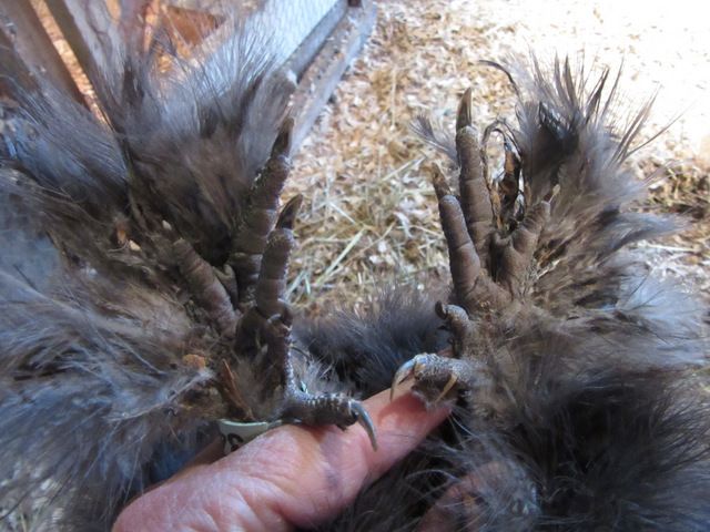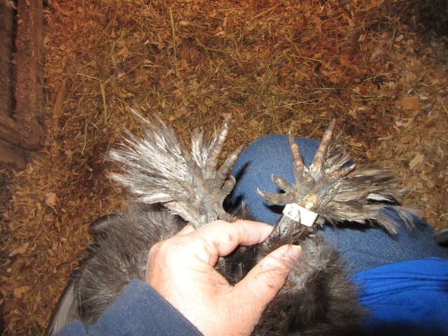 I toe punch my day old chicks to tell them apart from pen to pen and year to year. Some people use wing bands. The leg bands fit right above their feet.