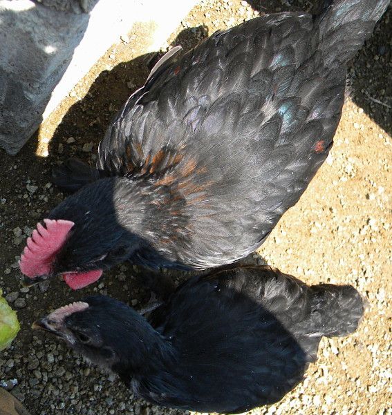 With roosters, I like to have them to work with when they are somewhat young, but we have had a few that were wild, full adults who did became friendly and tame with calm attention. The Marans male I showed you the photo of was completely isolated at the breeder's farm, and loves attention now. Some people don't believe roosters should be socialized, but I have had over 20 living together at one time in the same henhouse, with no buttheads, so I unless this changes at some time, this method works pretty well for us. (We don't add strange adult roosters to adult roosters- those go in separated areas. The Banty was a full adult, and the PR RIR were all raised here and introduced as cockerels and pullets.)