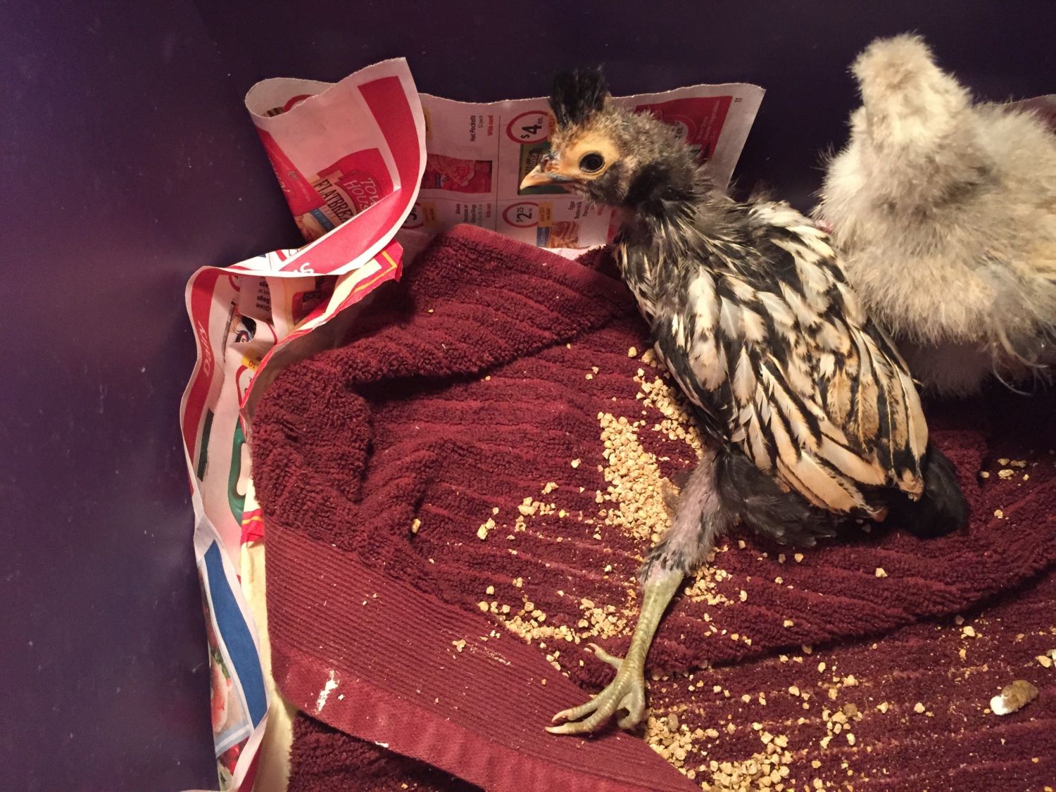 I brought home the chicks 4days ago and was told they were about 1week old. So they're maybe 1 1/2 - 2 weeks old.