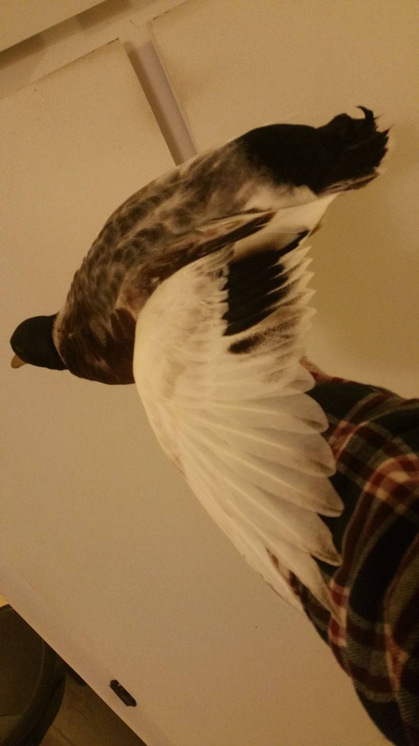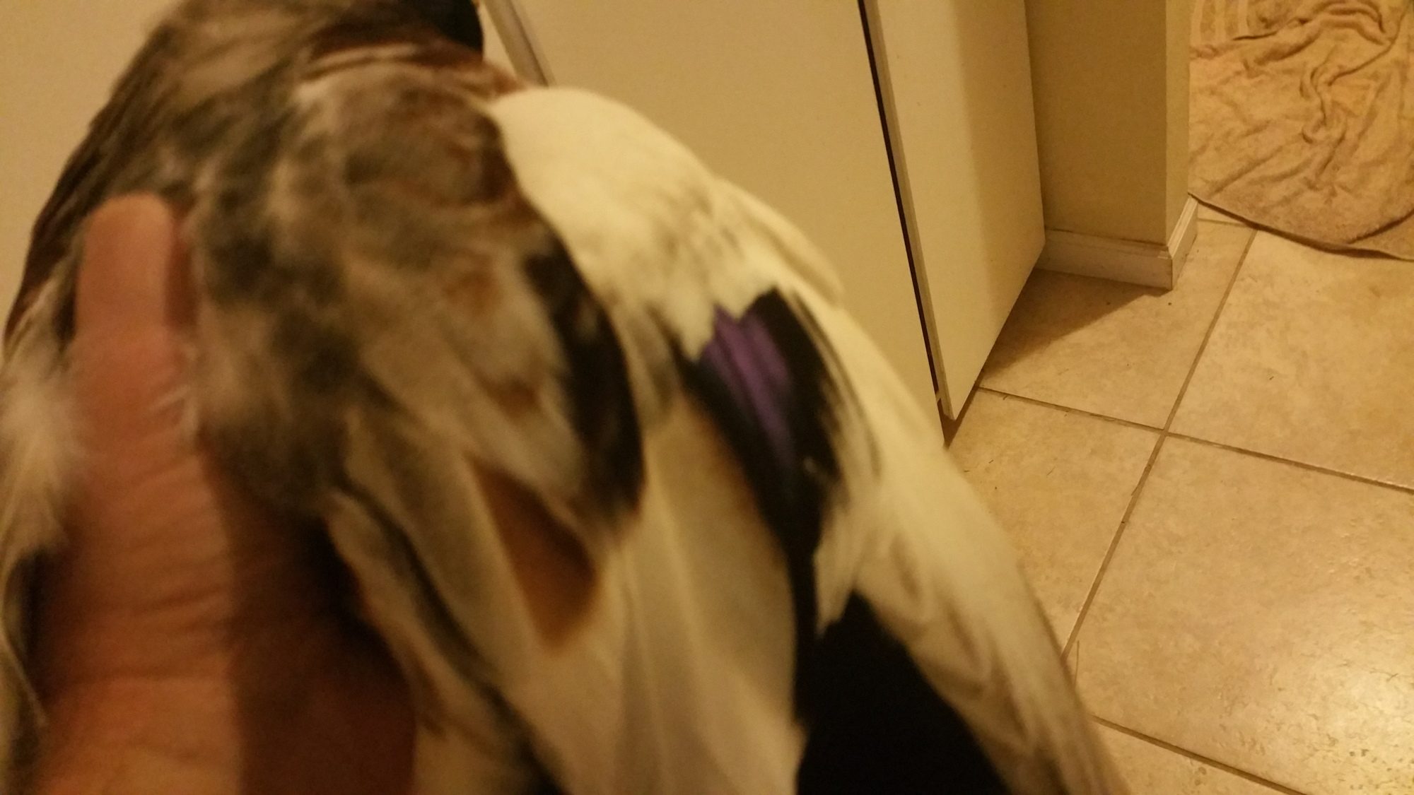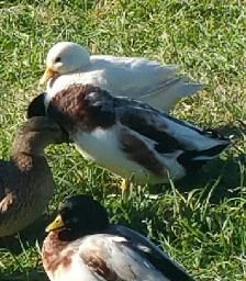 My Spotted Call x White Call cross drakes. They both have claret color above and below their wings, and everything that is light colored is pure snowy white, pure white belly, the color around where their wings fold is pure white, the one drake has black tail feathers except for the very tips are pure white and he has blue speculum color, these guys are just awesome and beautiful to look at. Didn't get any hens to survive from this. cross, but planning to pair them up with some hens with recessive harlequin genes to see how the color comes out.
