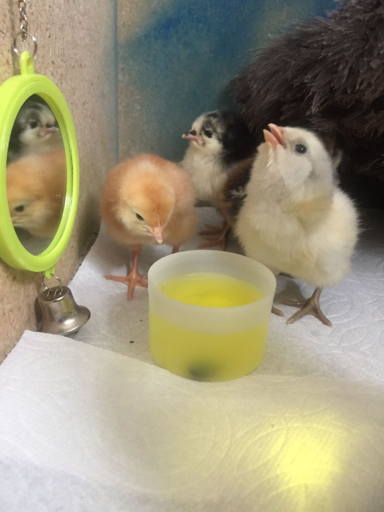 They seem to like sleeping under the feather dusters and they also hide under them after they eat/drink. I saw the suggestion on pinterest and decided to give it a try.