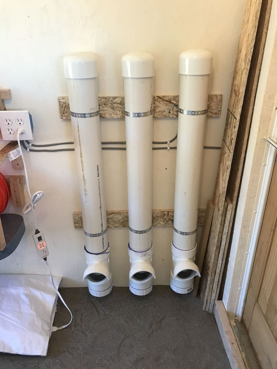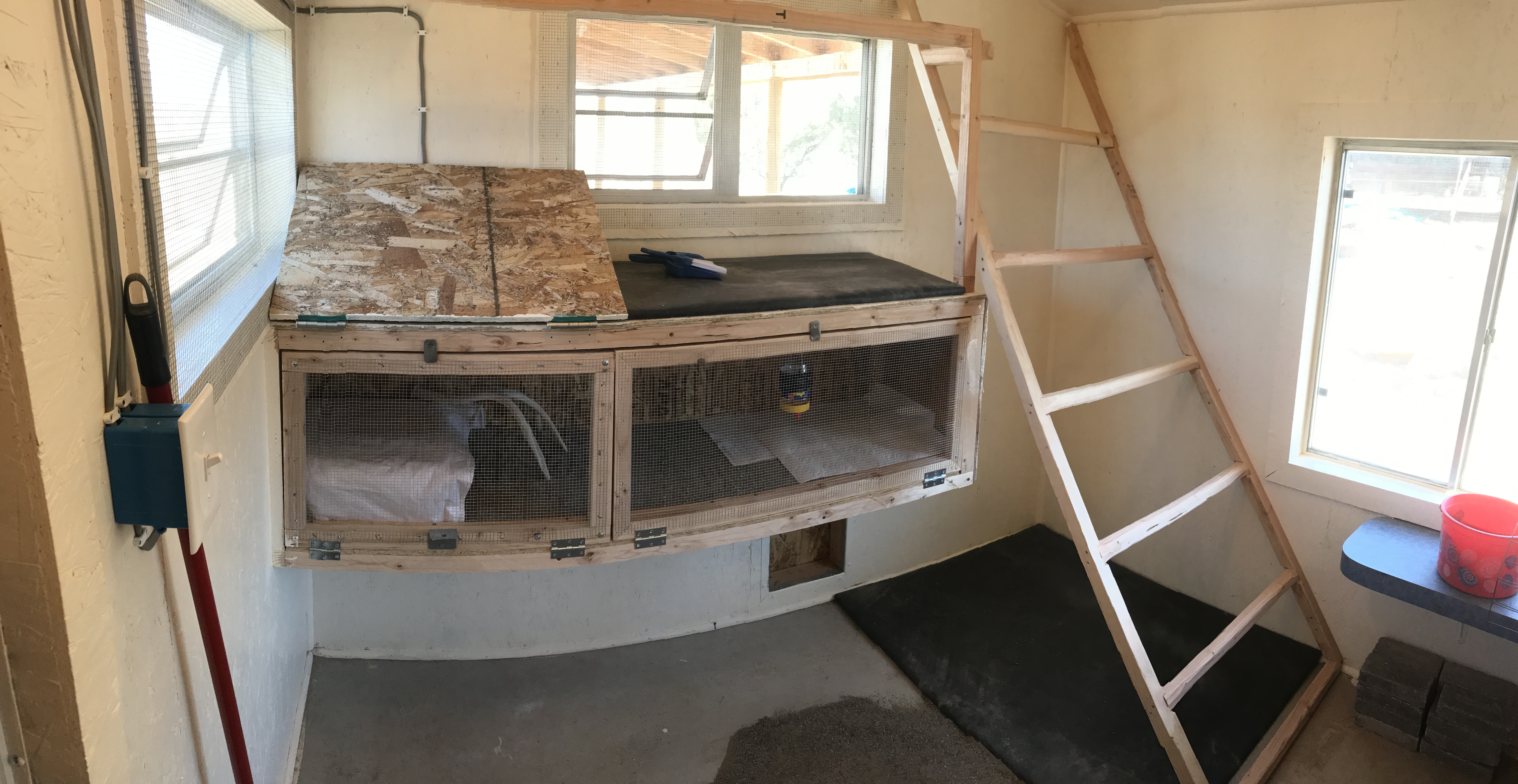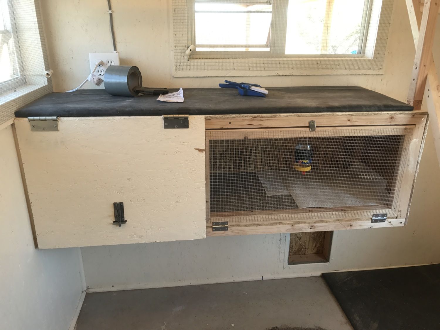 built in brooder. You can see under the brooder doors a piece of PVC pipe... that is our automatic waterers. I will have to get a better pic of those.