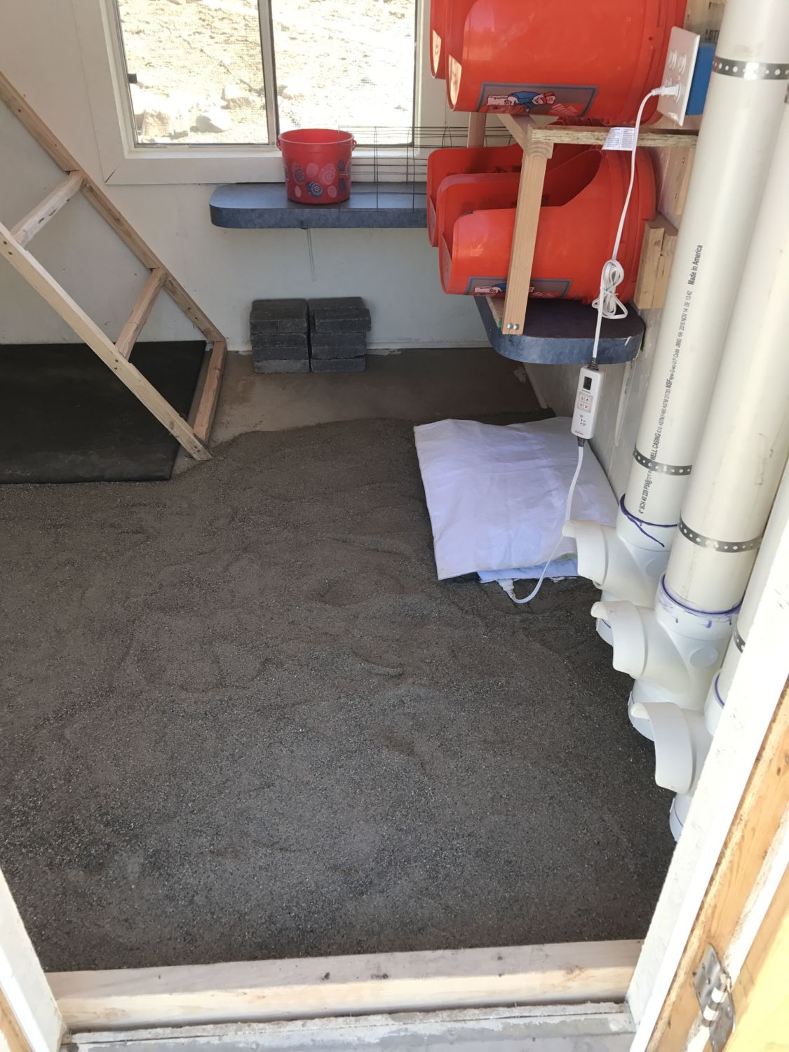 We need to finish adding in our sand. But have enough to start our 2 babies off tomorrow. You can clearly see that no chicks have actually lived in here yet!