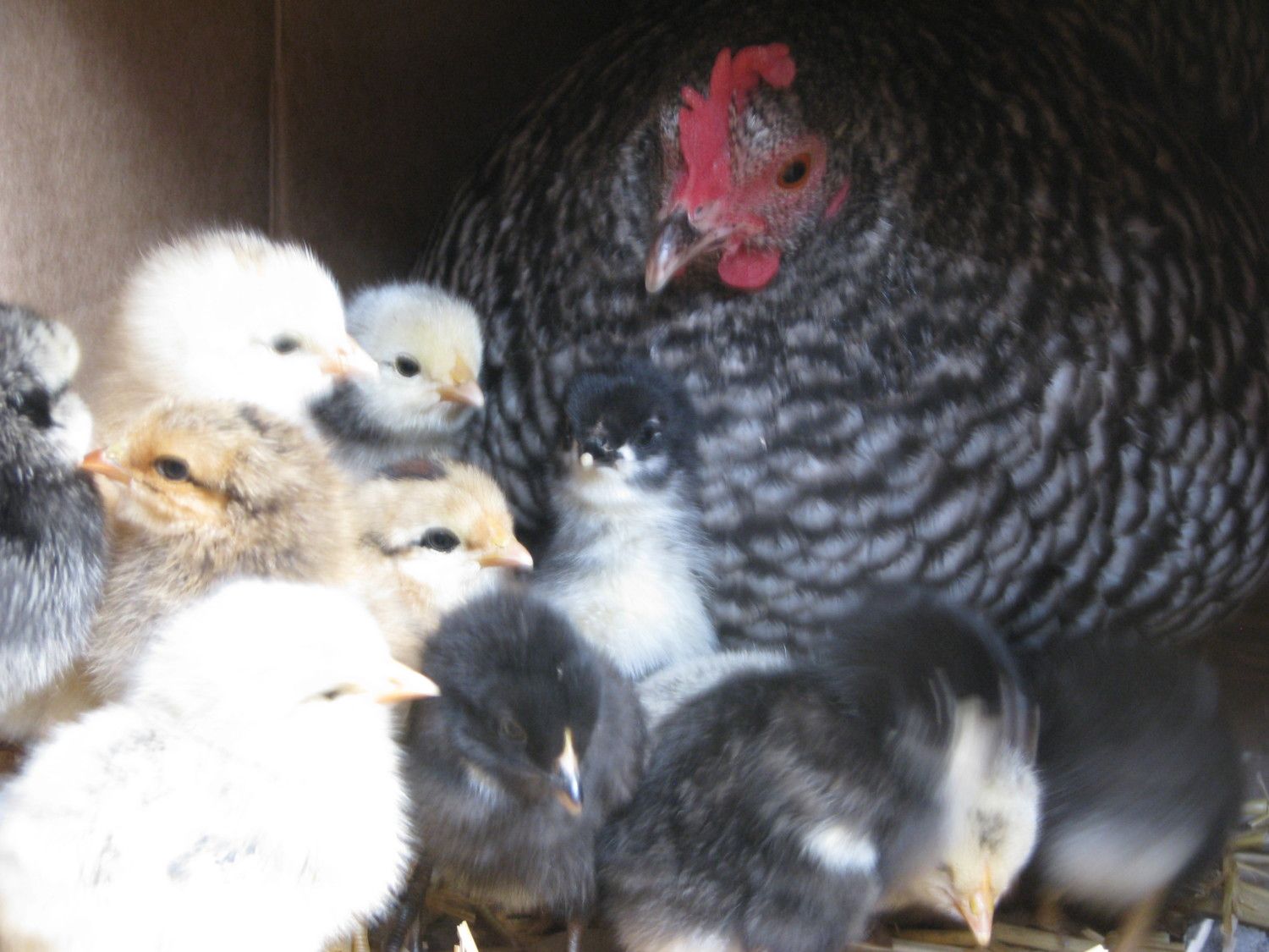 In this group, these chicks Mom's were Blue AndalusianX, Salmon FaverolleX, Dominique/FaverolleX, and Welsummer.