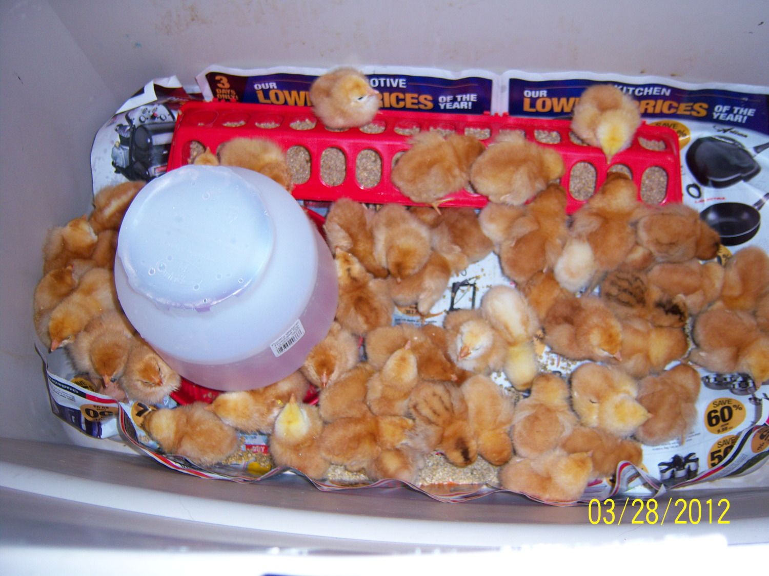 Every year I raise pheasants to release on our farm (no hunting!) This silkie hen is the foster mom. She was sitting nicely on her (sterile) silkie eggs, so I slipped the dry fluffy just-hatched pheasant chicks under her two at a time. Although you can only see 4, she has 30 chicks under her. It's always funny when the pheasants start flying when they're about 2 weeks old - the chickens just stare and you can hear them thinking, "My baby did that?! What a super mom I am!" By the way, the nest she's sitting in is a bonsai training pot.