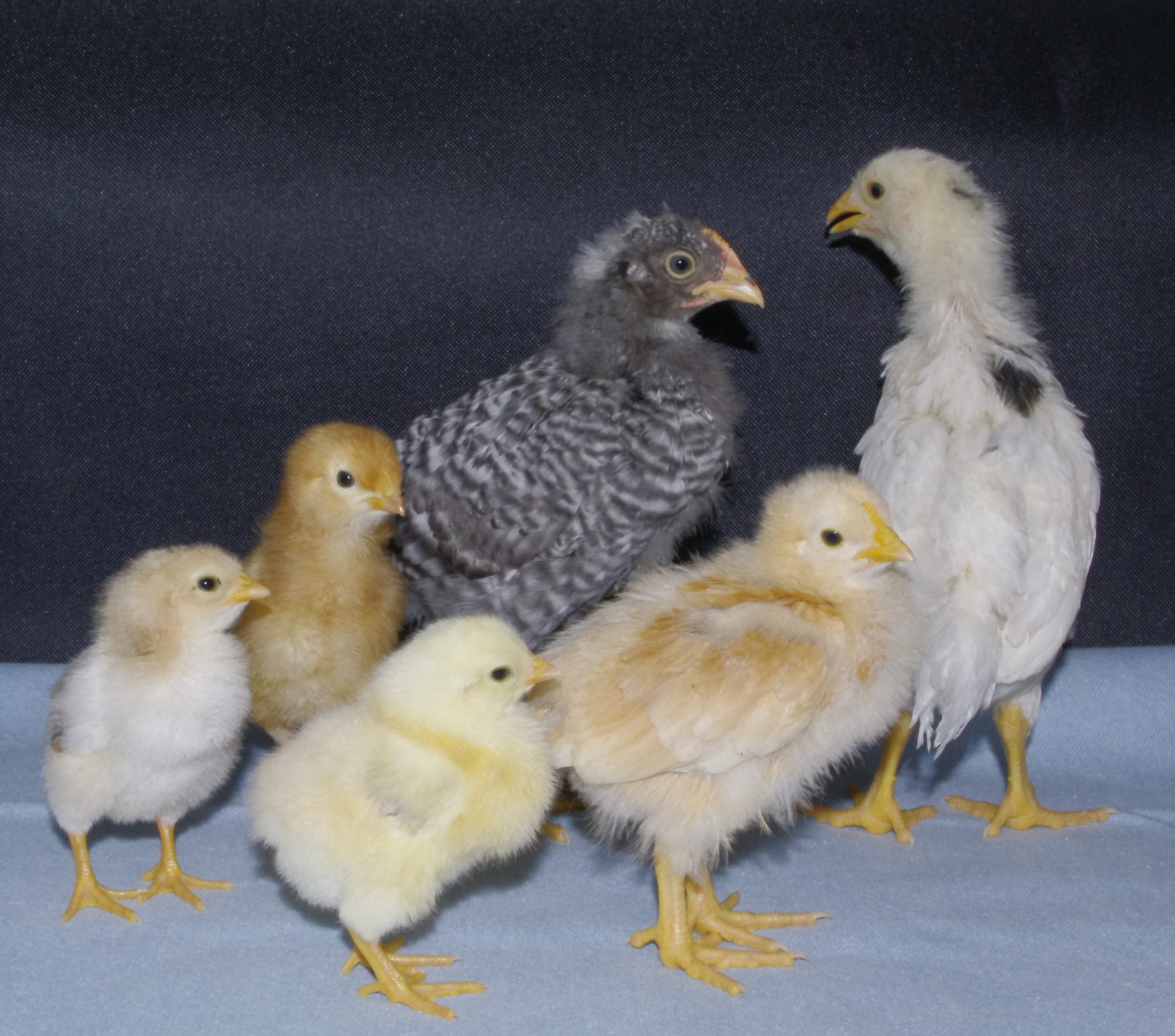 2 Banties from the feed store and 4 from the awesome chickenstock over the weekend for my kiddos.. Not sure what the 2 black ones are (Australorp and ? maybe) and the other is EE vs Ameracauna, pretty sure it's EE, but how do you tell the difference?? So fun to watch them grow!!