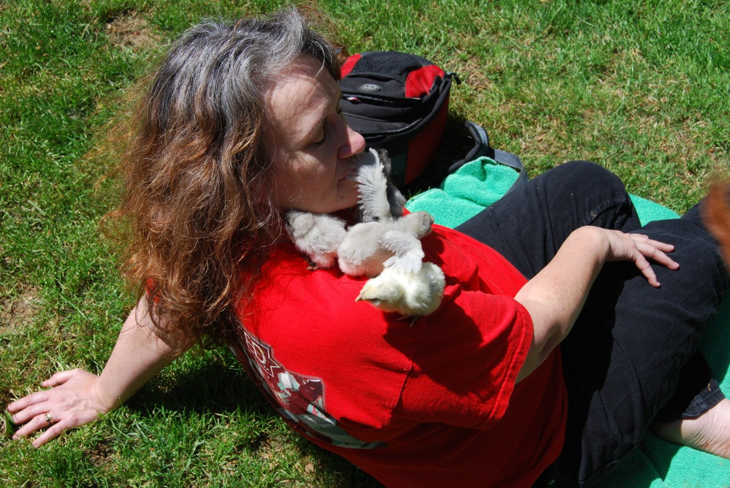 Japanese Bantam, Splash (She's enjoying her first outing in the sun!)
