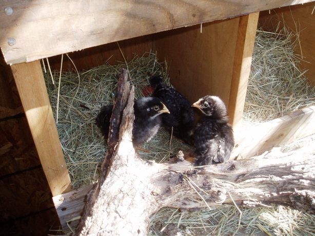 One of the big girls got in this, but there are my 3 Ameracaunas - and Maggie, our miracle Buckeye. There were 3 of them, but I had put them in the henhouse too soon, and a major thunderstorm/cold front took 2 away - Maggie wasn't in great shape, but the wife and I nursed her a few days, and she's doing very well!