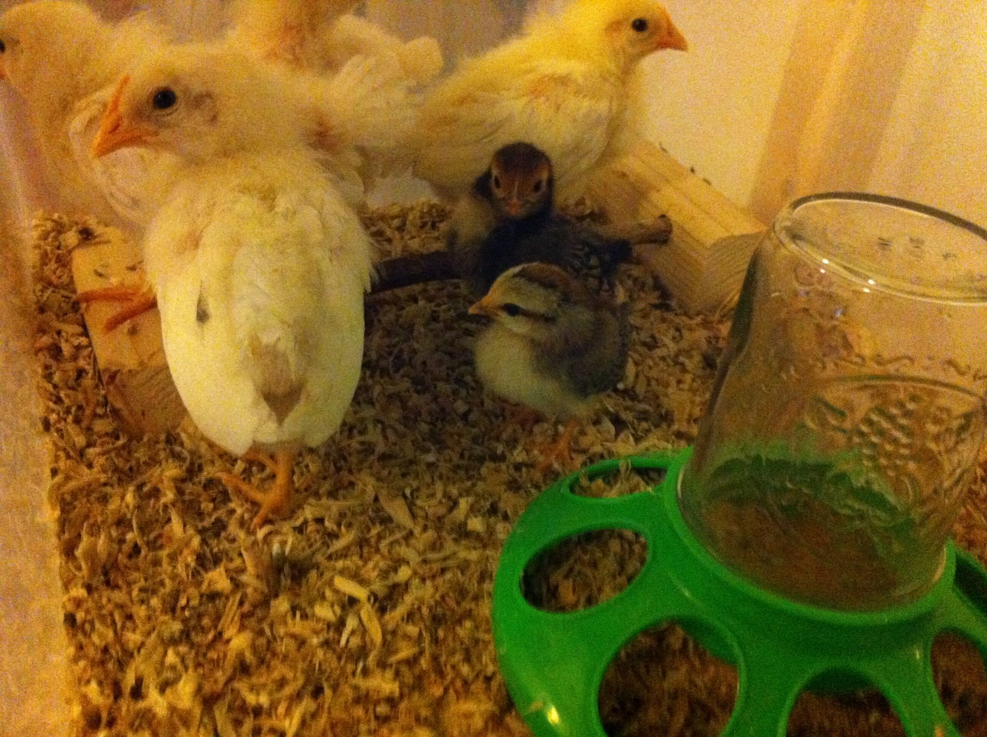 So here is our baby Black Australorp and our Hamburg Bantam 5 days old in this picture..