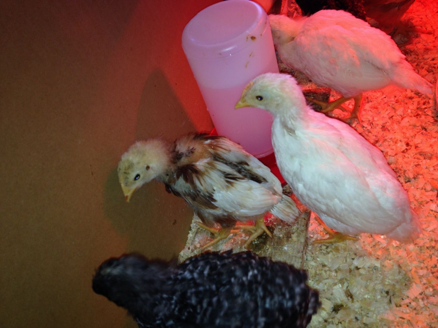 My two favorite Australorps about 8 weeks old. The cockerel somehow managed to lose a toe two days ago, but is running around and ruling the introduction pen again today!