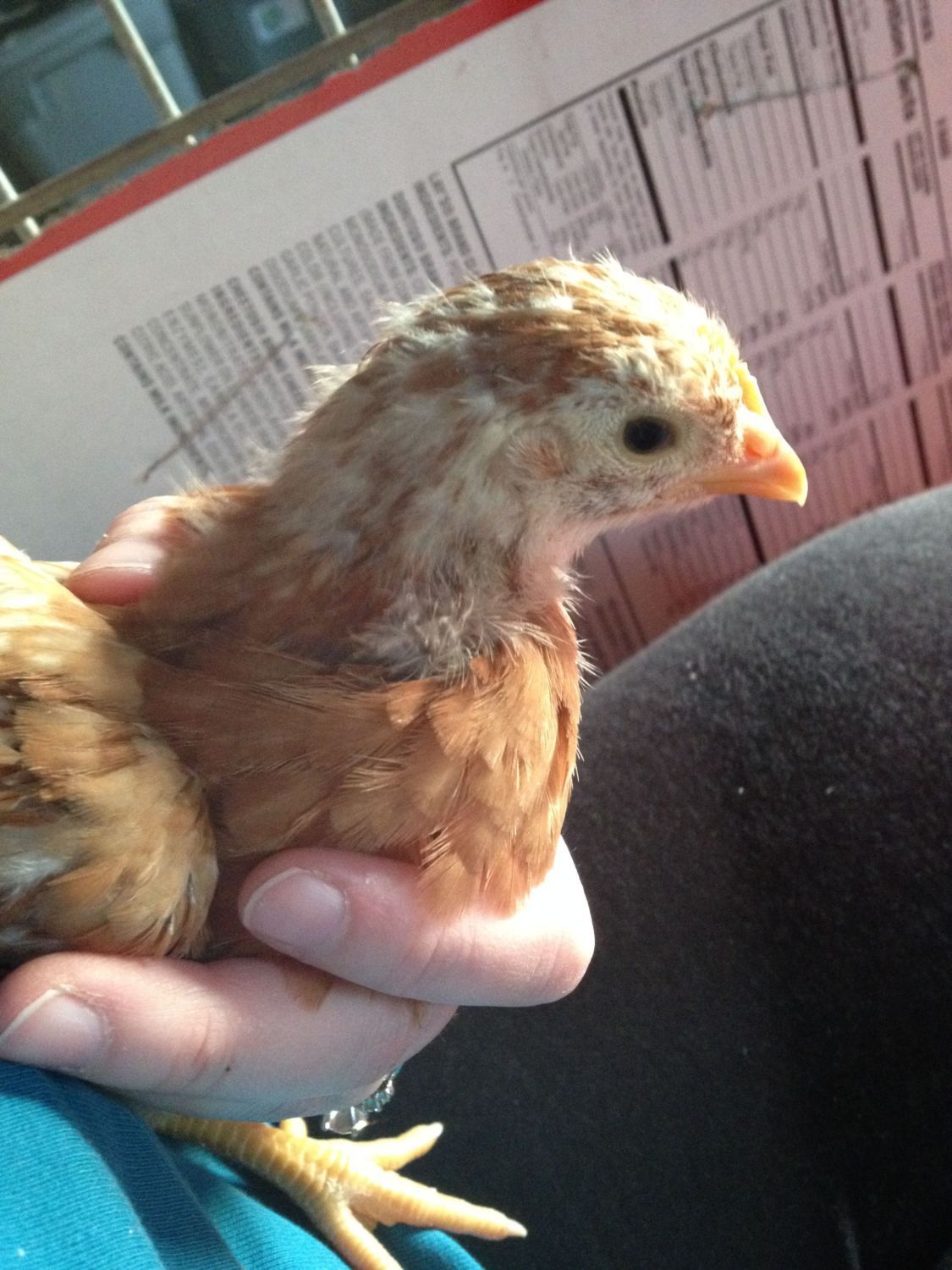 to tell the sex of a chick put one index/pointer finger under where the beginning of the wing meets the body and the other one just like it on the other wing then pick them up by they index fingers under the wings and if its a male than his feet will point out but if its a female then its feet will go straight down