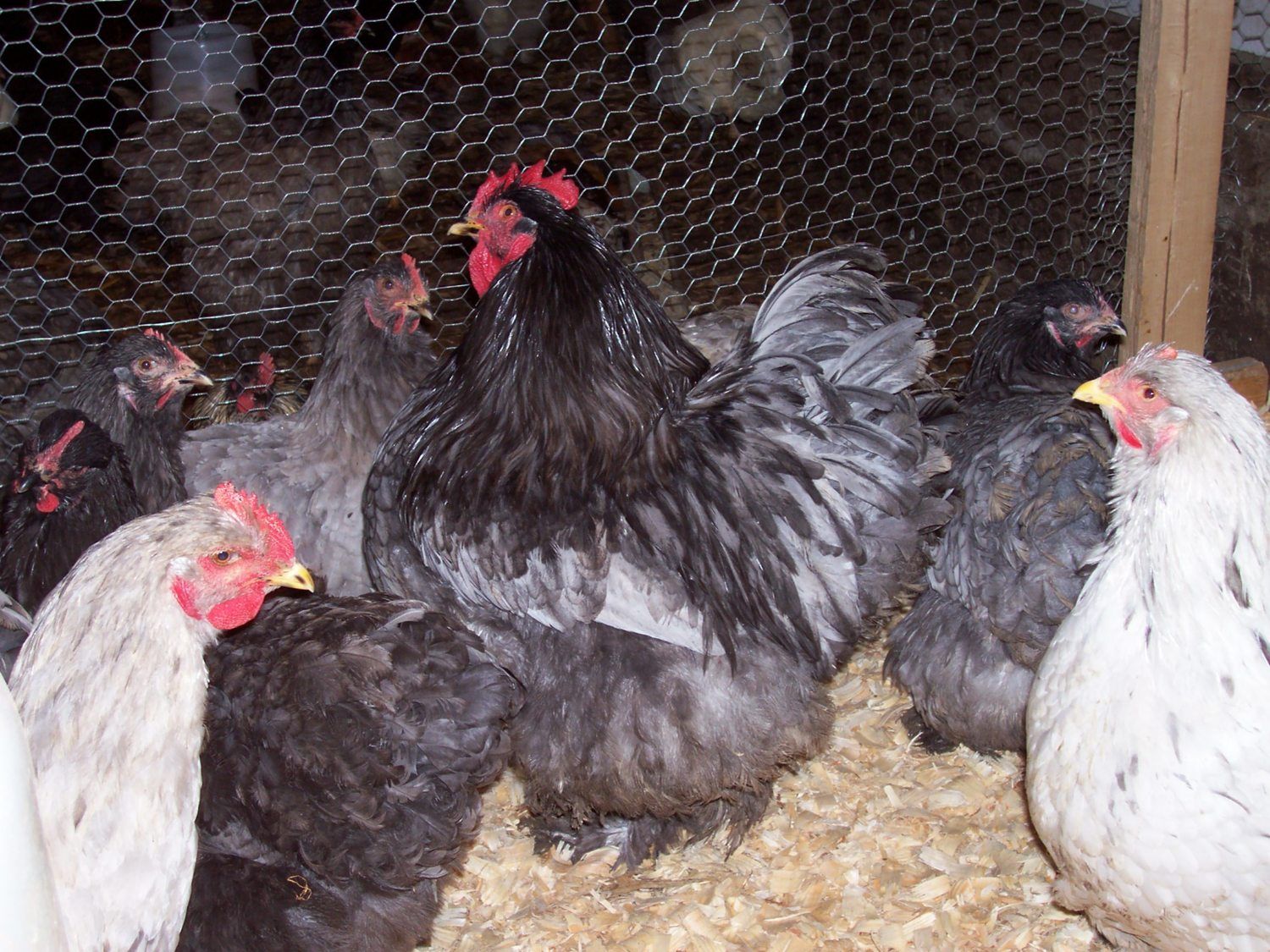 6 BBS Bantam Ameraucana we got Champion AOCCL and Res. Ch., plus many BB's, from chicks hatched from this pen There is a chocolate bantam hen and 3 black frizzle hens in this pen. They all lay blue eggs, s I have no way of knowing which ones are theirs.