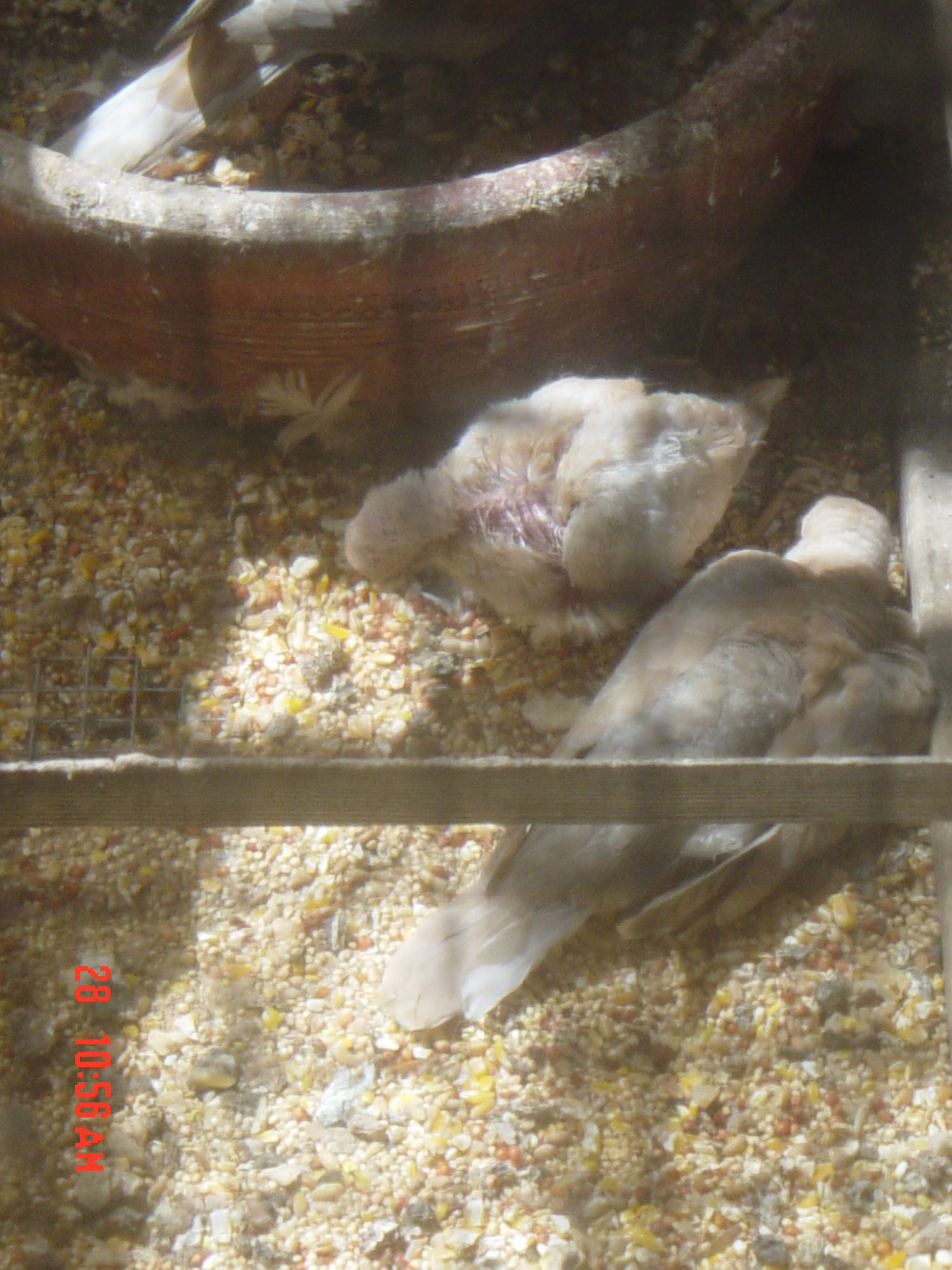 Mom is not attending to the little guy, Im feeding it. It sparingly feeds the larger one who is up on the perch begging next to her. Mama often even flys away from the large one in an effort NOT to feed it. I think Mama is trying to break both from their dependence on her. This is fine for the larger one as it can get around the cage but the smaller on depends on me to move it around. The food is mostly at the bottom of the cage and the little one will forage a bit but not enough to sustain it.