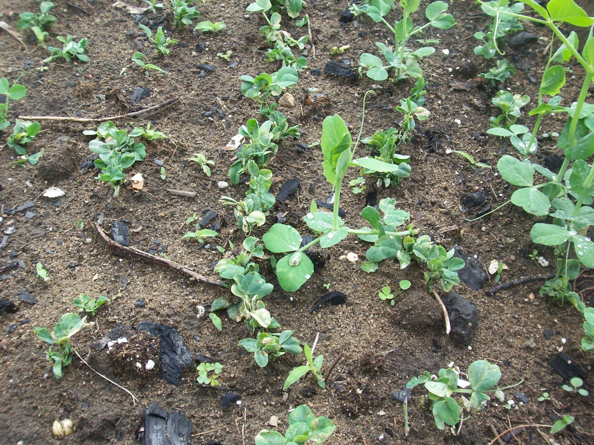 Too much ash makes the soil too alkaline. If the ash is more concentrated in some areas over othrs, could affect the way the peas grow. When I add ash to my raised bed, it is one coffee can full for a 4 x 16 foot bed. I mix it with a wheelbarrow of compost and the sprinkle that over the surface of the bed and turn it under. I then lay on 2 inches of compost and turn that with a fork.The back yard is surrounded by white pines. We have had very good luck with adding one ash pail per 4 x 8 bed to lower acidity for all of the other veggie. Do you think this is an issue for peas? If so, why would some be healthy and some stunted you think?