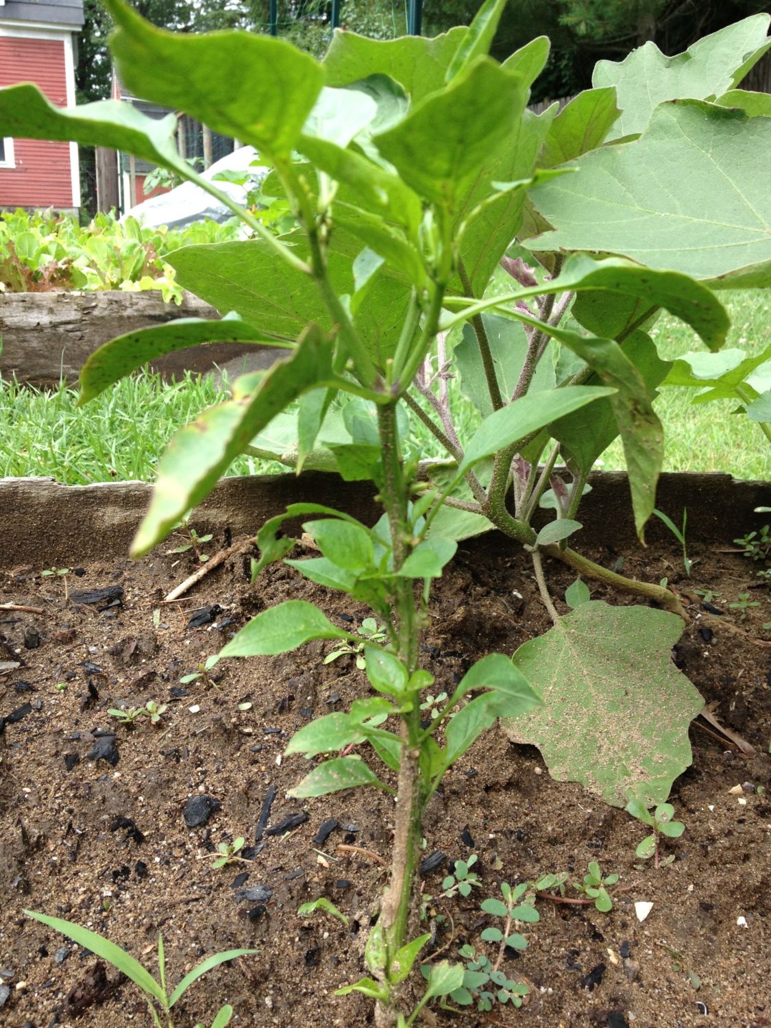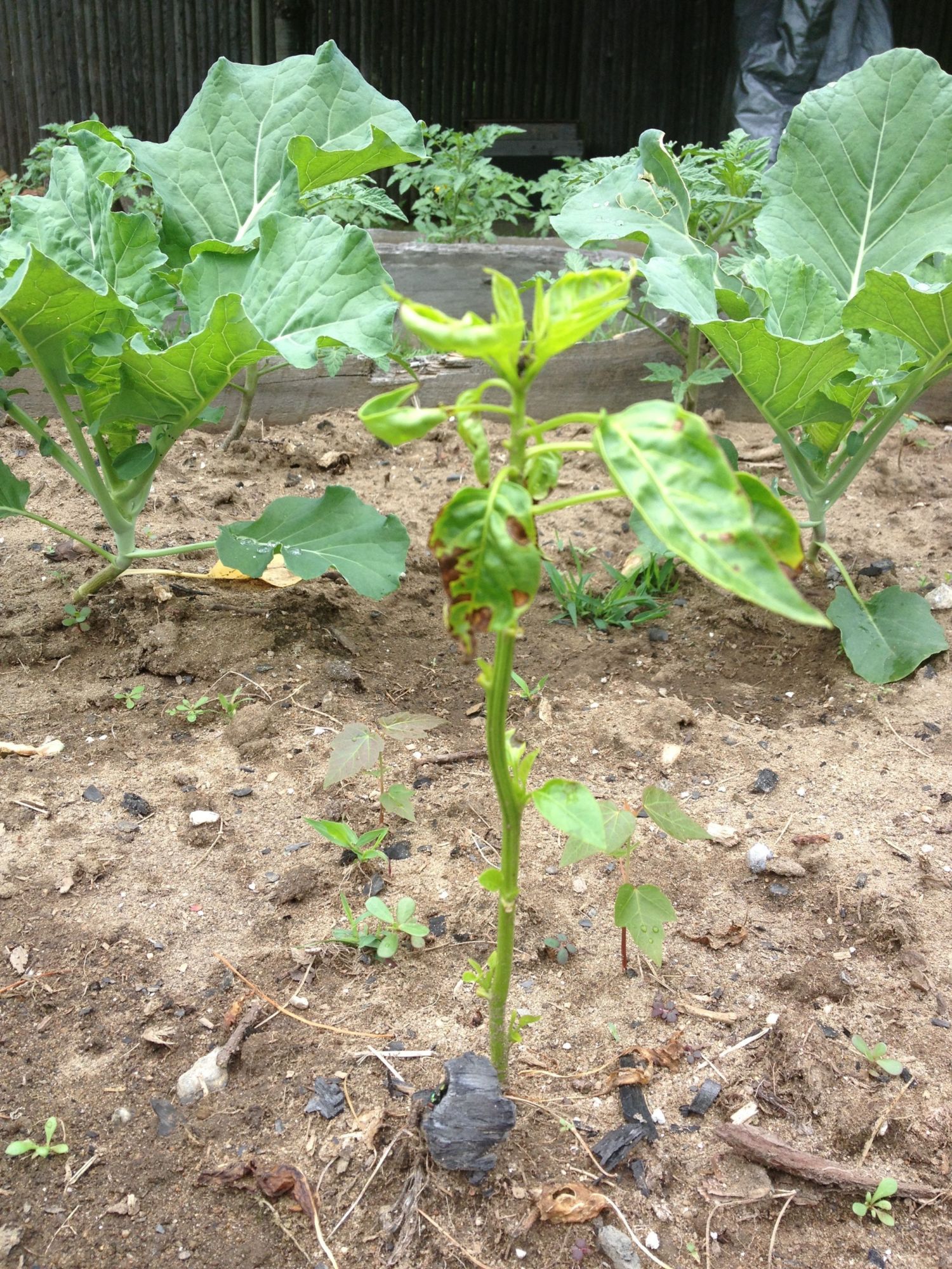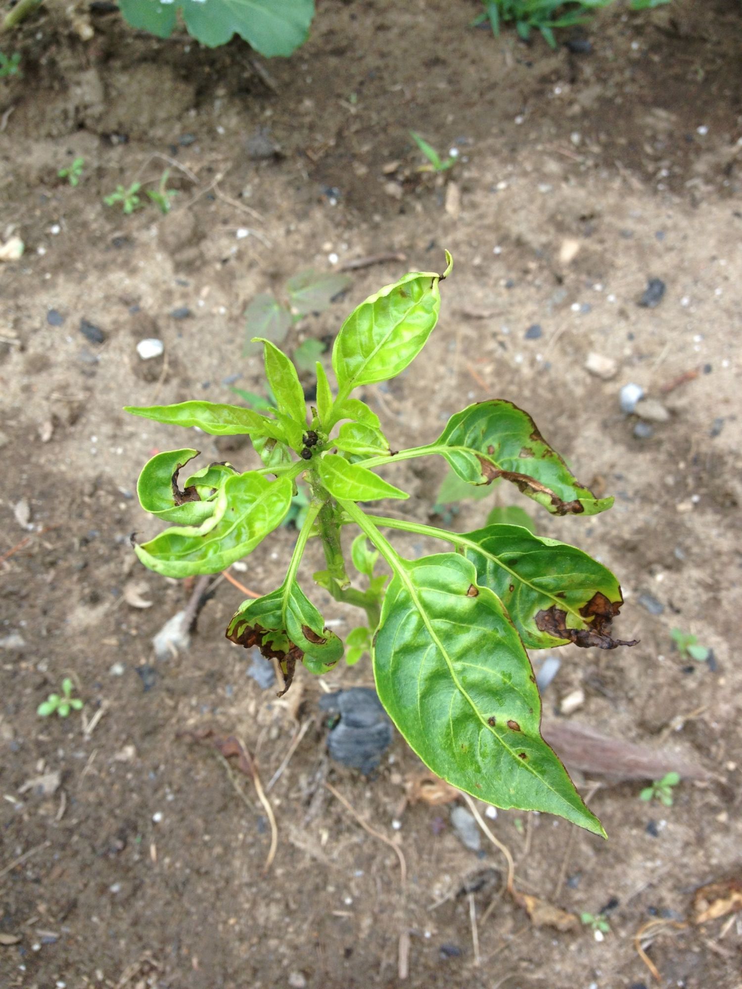 Here is the pepper plant comeback! Leaves sprouting directly from the main stem. Very odd.