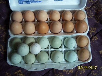 I have seventeen blue, blue-green and olive eggs in the bator to hatch on March 17. I didn't know this post was here but it seems I joined this group without knowing it.