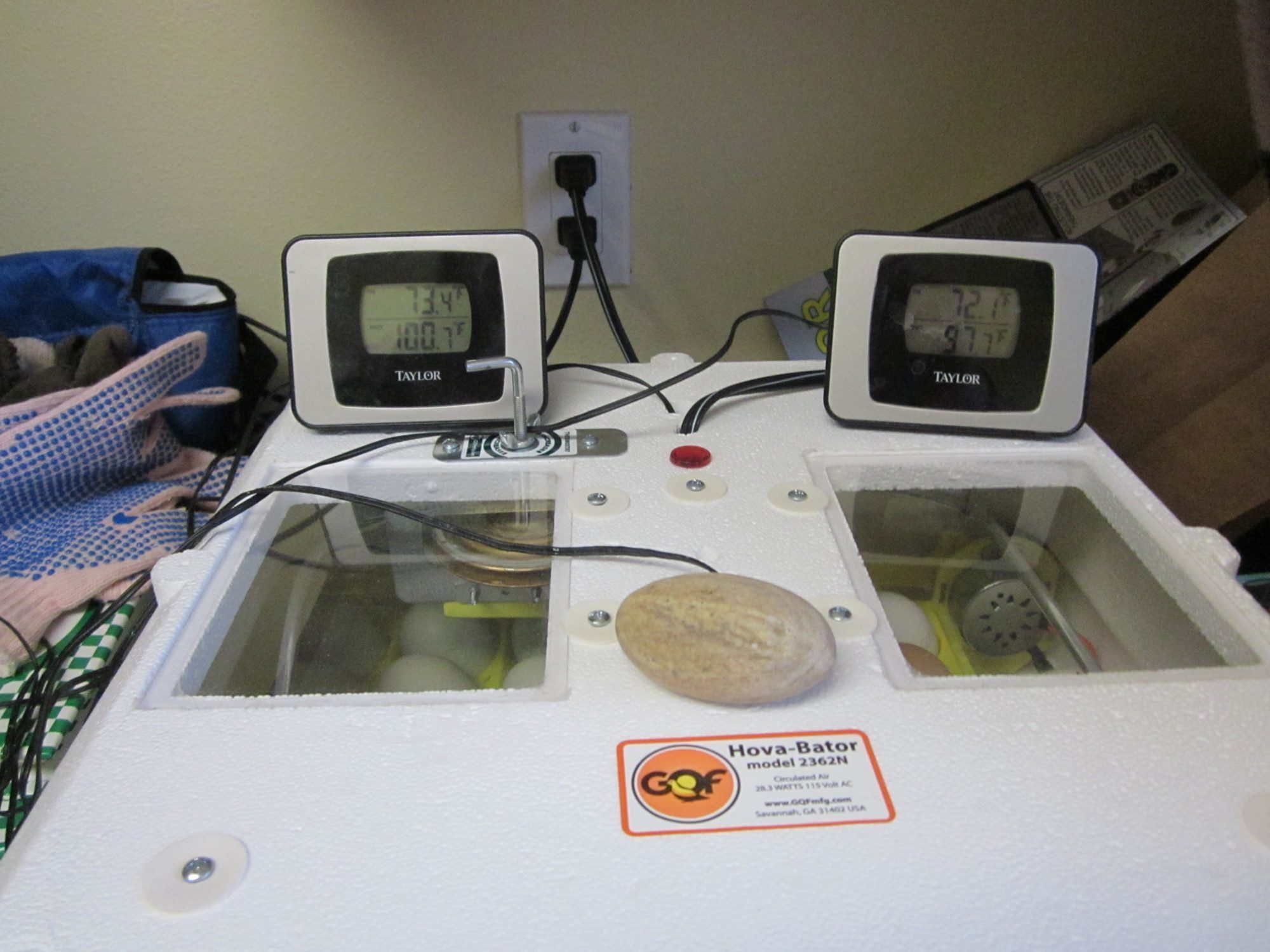 Oooh! Someone (tls_ranch) just posted on the Northern California thread about how they use the clear plastic grape or strawberry containers to separate staggered hatches, or different breeding lines. She lines the bottom with a shelf liner and puts the hatching eggs in. When they have all hatched, she just picks up the whole container and the incubator is ready for the next hatch. No mess to clean up! The big grape containers from Costco hold 12 eggs, with room for a few more. I have a 2# strawberry container that I think I'll use to put my BCM eggs that aren't very high quality. Keep them away from my good ones so I know which is which.