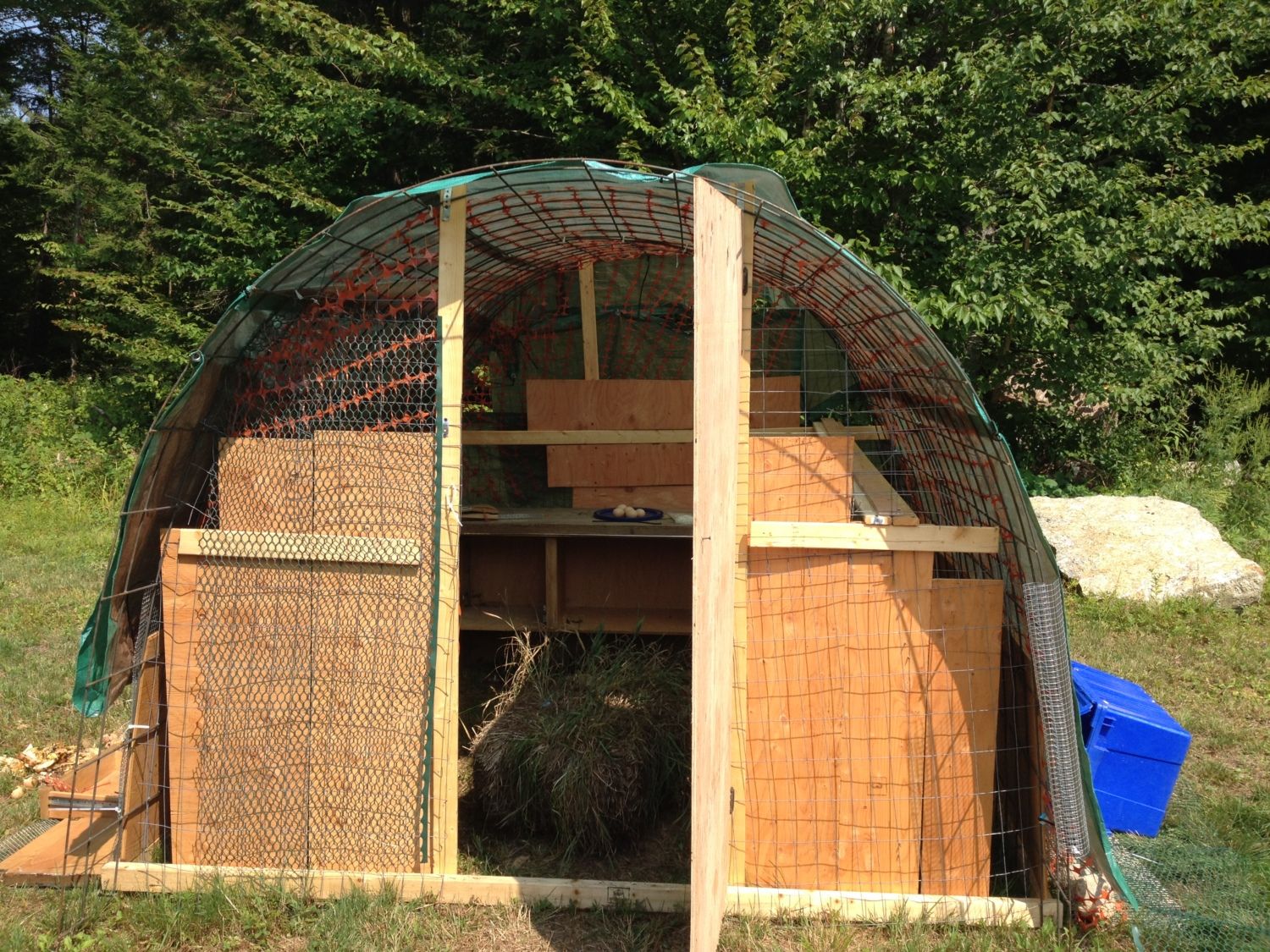 I decided to go with a hoop coop because I could build it myself. I've never done construction of anything before and I felt it was easier to start with something that created its own walls.