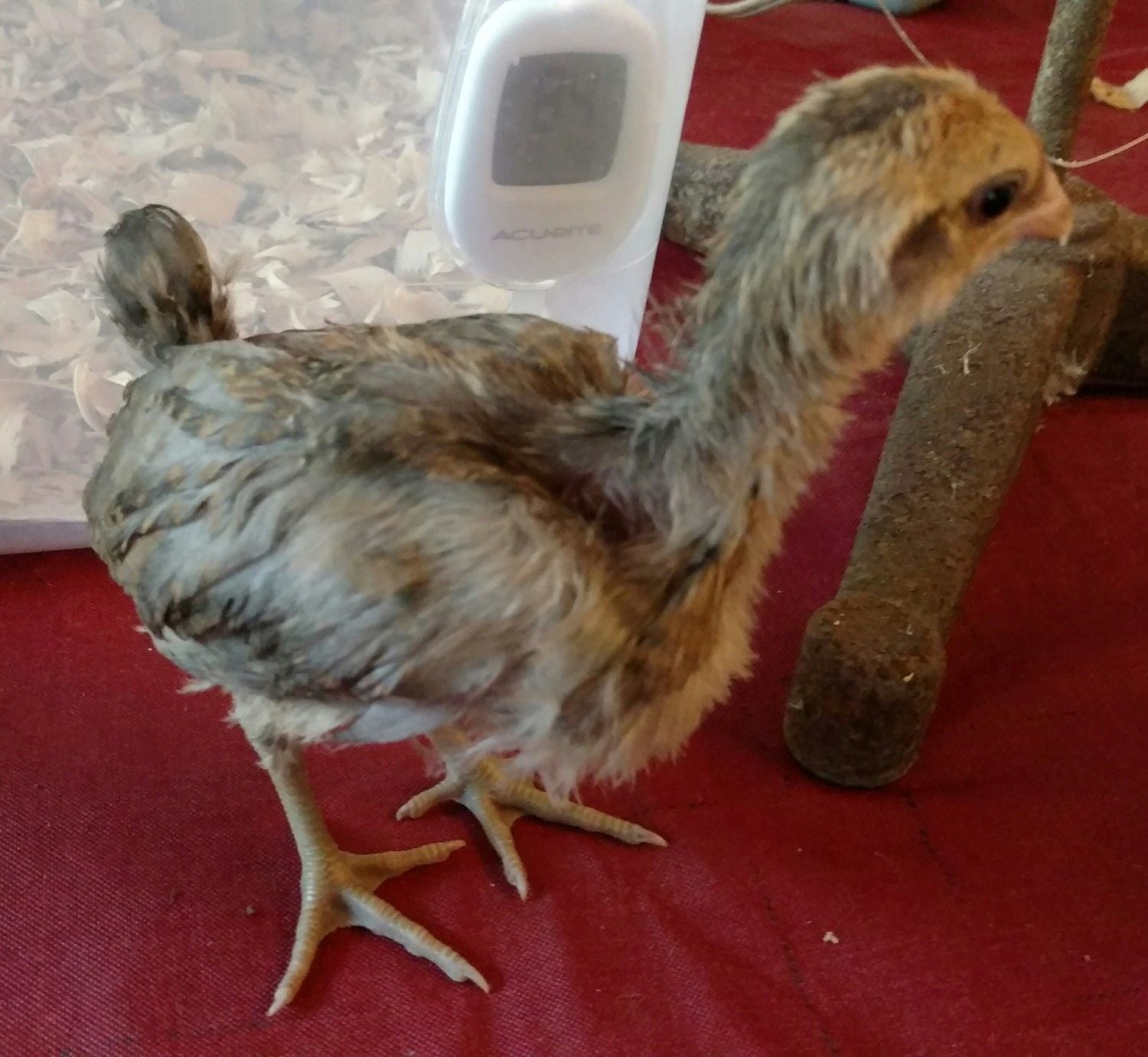 I just brought this chick home yesterday, supposed to be about 4 weeks old and an Ameraucana from a local breeder on Craigslist.