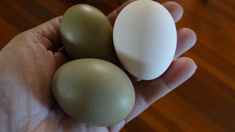 I have been getting one like the top left Amelia egg too! I thought it might be from one of the EExFBCM hens I have but now it must be one of the Amelias(I have 5 of them).today must just be an olive-egg day: I have two OEs, both are "Amelias" as we call them in the NorCal thread, CL x penedesenca -- and one had stopped laying eggs for the past couple of months while she was broody -- just recently restarted. usually she & her sisters eggs are both a sort of pale olive-y green, but today one of them was MUCH darker than usual, while the other was much bluer than usual! here's a picture: