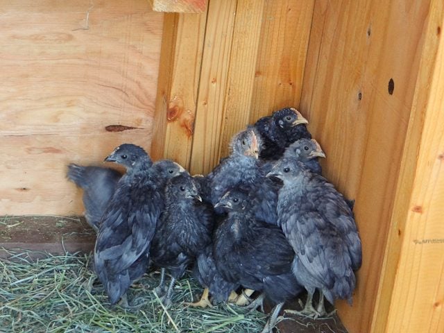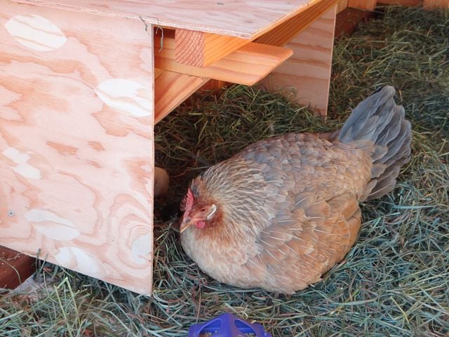 Lukka is wandering around inside the coop with her babies. So cute.