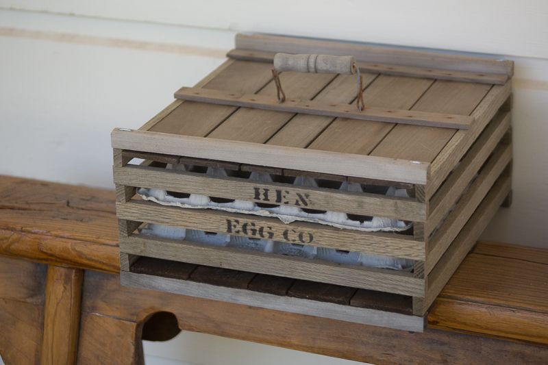 Anyway, Mike sent us egg crates from Lehmans! They are so cool. I am not letting real eggs get anywhere near mine, but I put wooden eggs in it and it is on the front porch. I haven't gotten it displayed exactly as I want it but we just love it. I may put it on the service porch to collect and separate hatching eggs, but that would mean using it for real eggs. Hmmm, gotta think about this but it would be cool for that too. I could use styrofoam cartons in case of breakage.