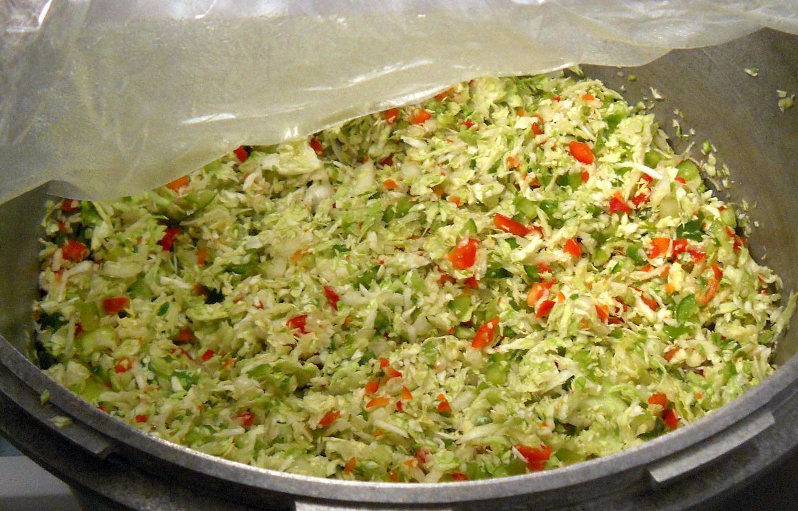 The bulk of the cabbage is going into a super crunchy, zingy cabbage relish, almost like a coleslaw in a jar that wekiva bird makes. She sent me a jar and I was in love. Here is the cabbage, peppers and onions with K salt sitting overnight. Tomorrow, will add the spices and cook and can it.